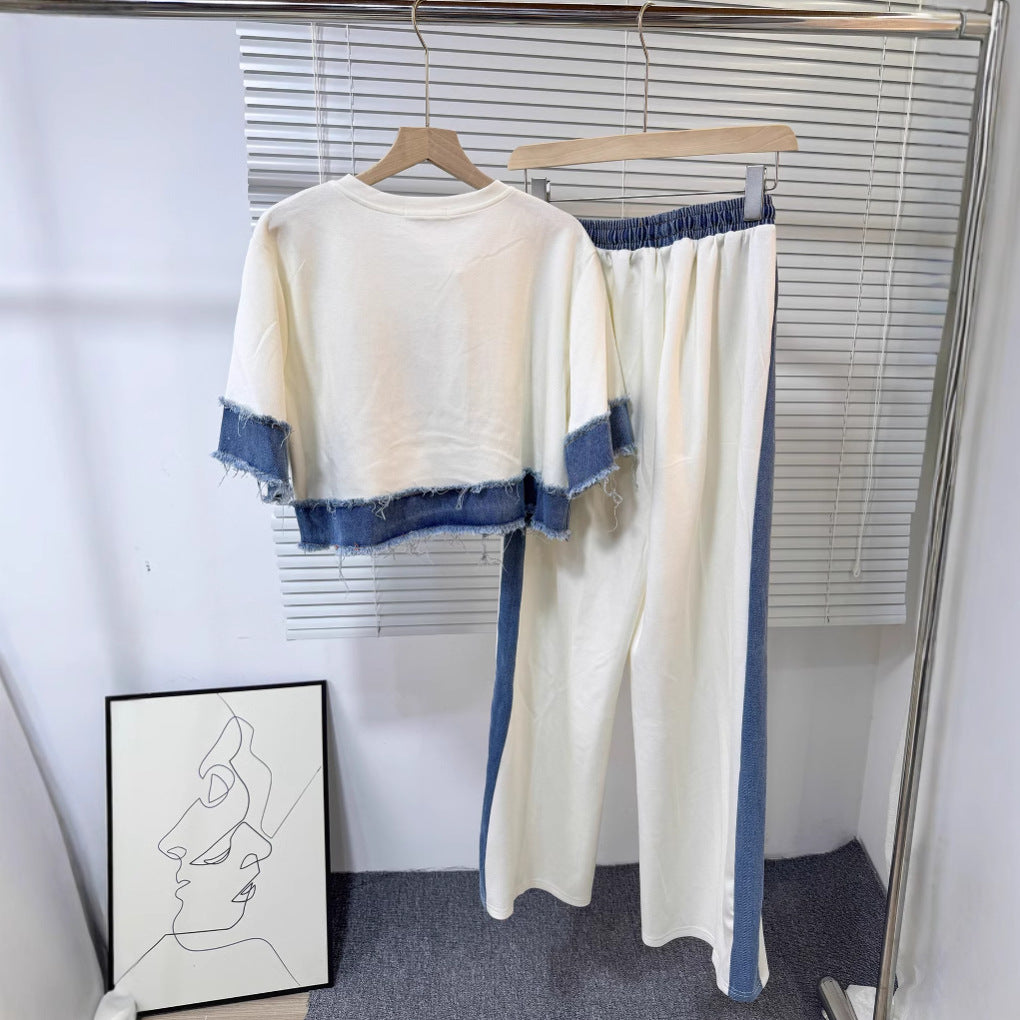 2025 Summer Loose Short-Sleeved Blouse Wide Leg Trousers Two-Set Sports And Leisure Suit Women