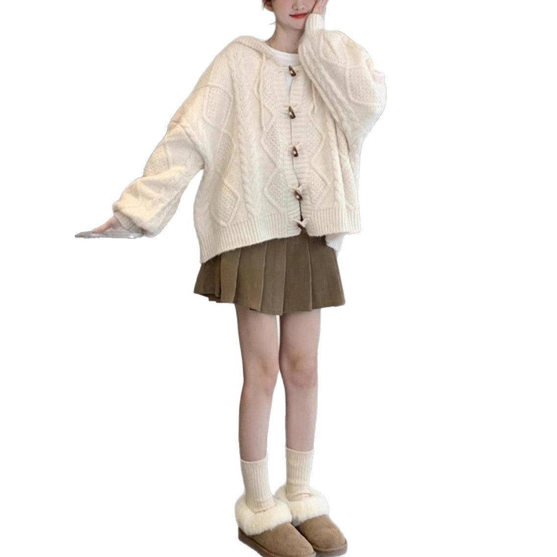 2025 Autumn New Spring And Autumn Lazy Soft Knitted Cardigan Soft Knitted Cardigan Soft Tie Blue Hooded Sweater Coat Women Autumn And Winter