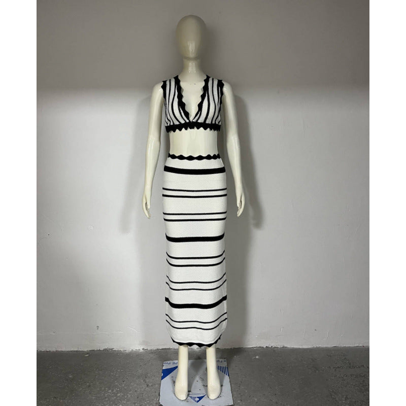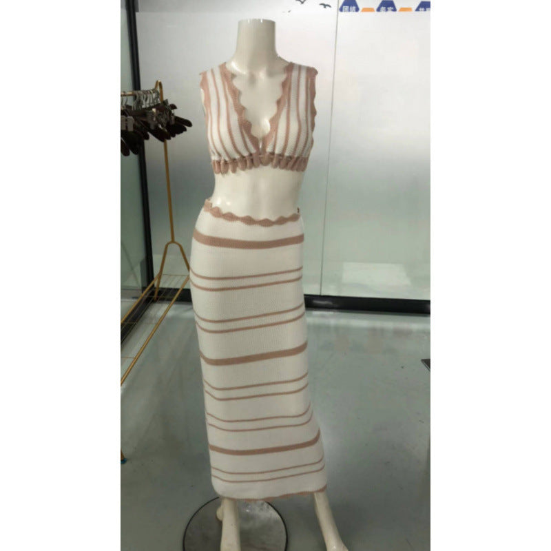 2025 Striped Bikini Knitted Vest Sling Suit Beach Bohemian Style Long Dress