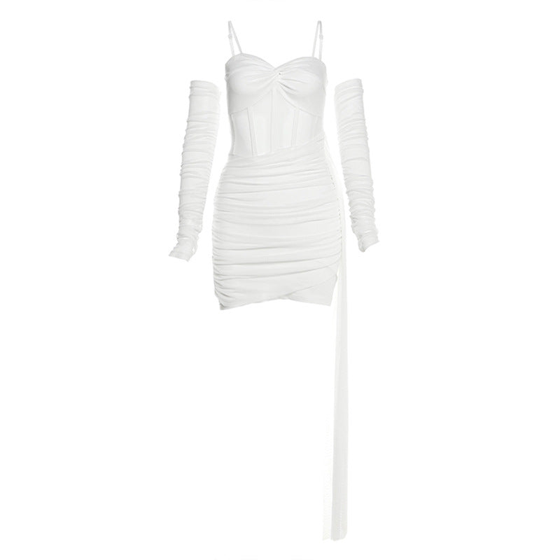 Fashion 2025 Autumn And Winter New Women's Dress French Hottie Sexy Sling Mesh Splicing Perspective Waist Dress