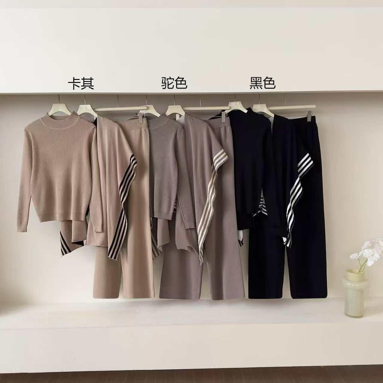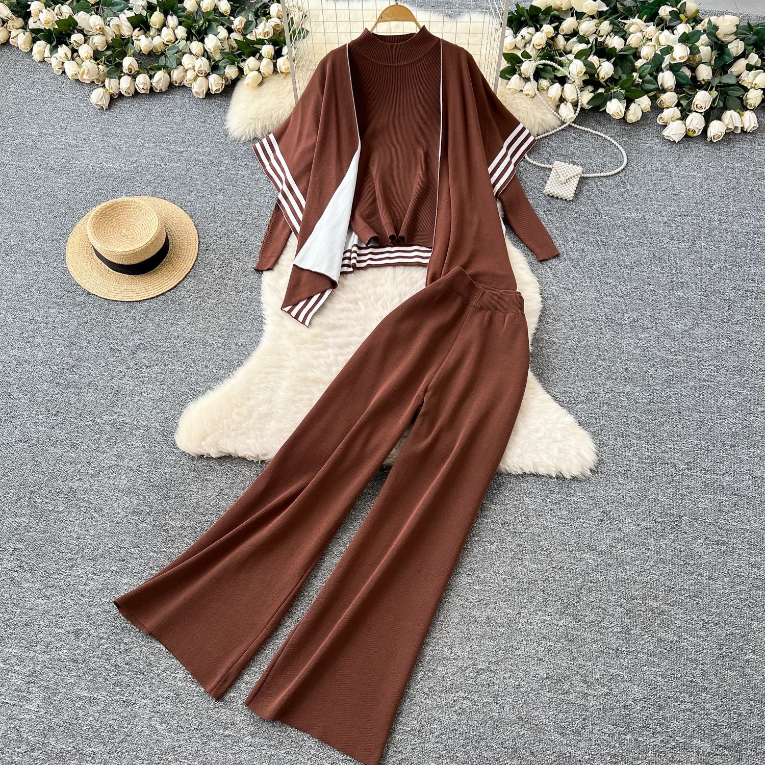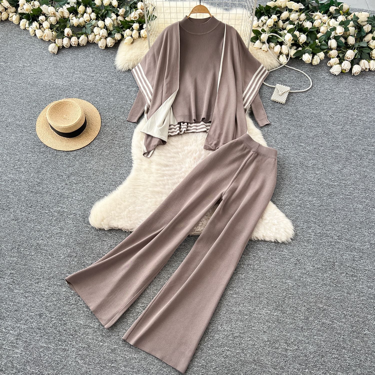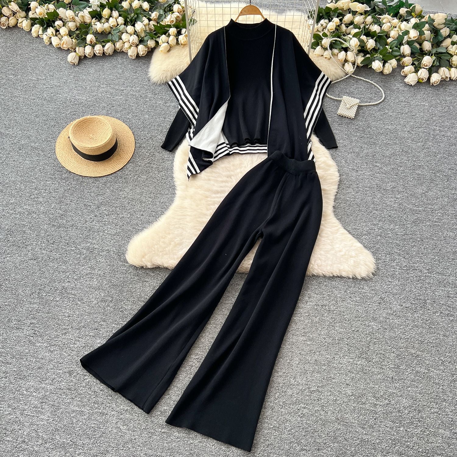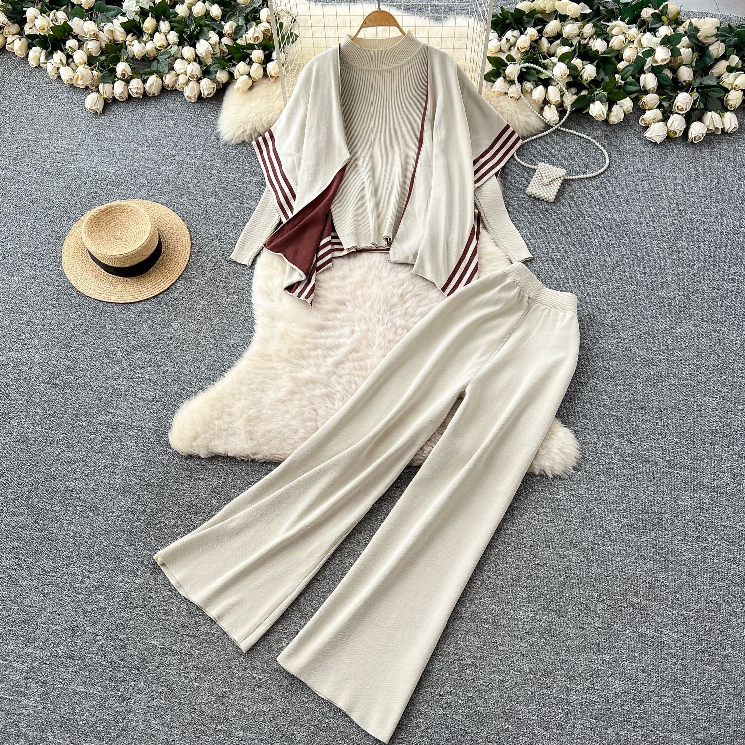 Relaxing Lazy Suit Women Loose Outer Shawl Scarf With Long-Sleeved Knitting Tops High-Rise Sweater Pants
