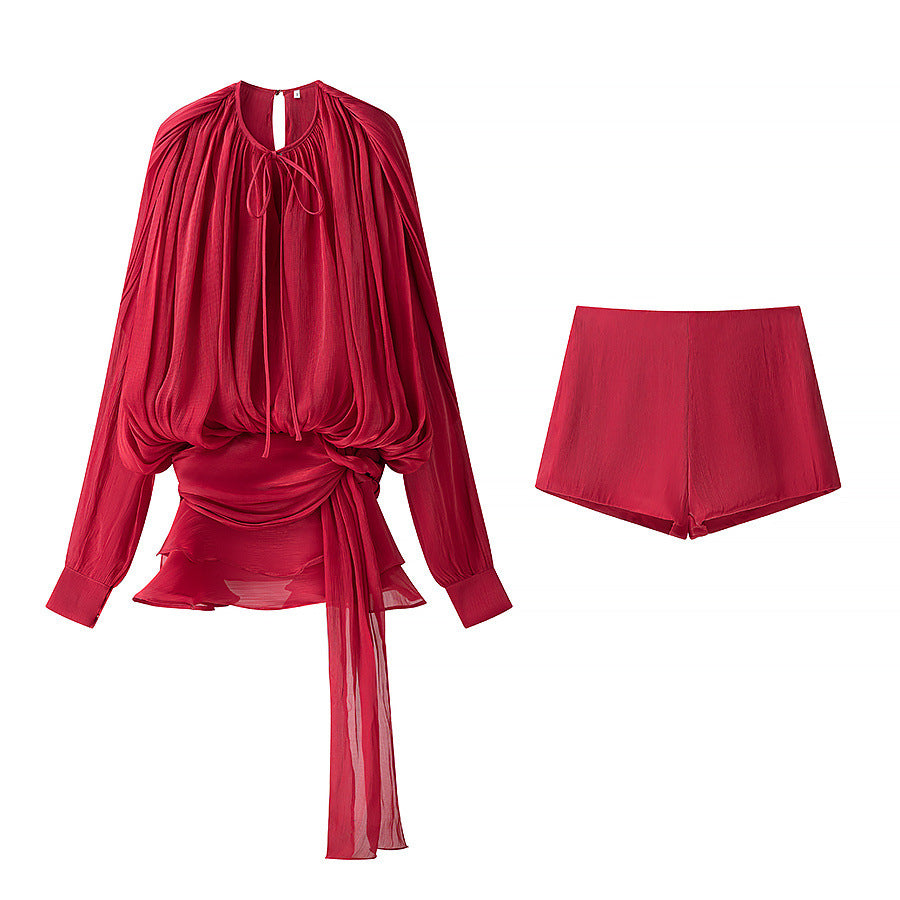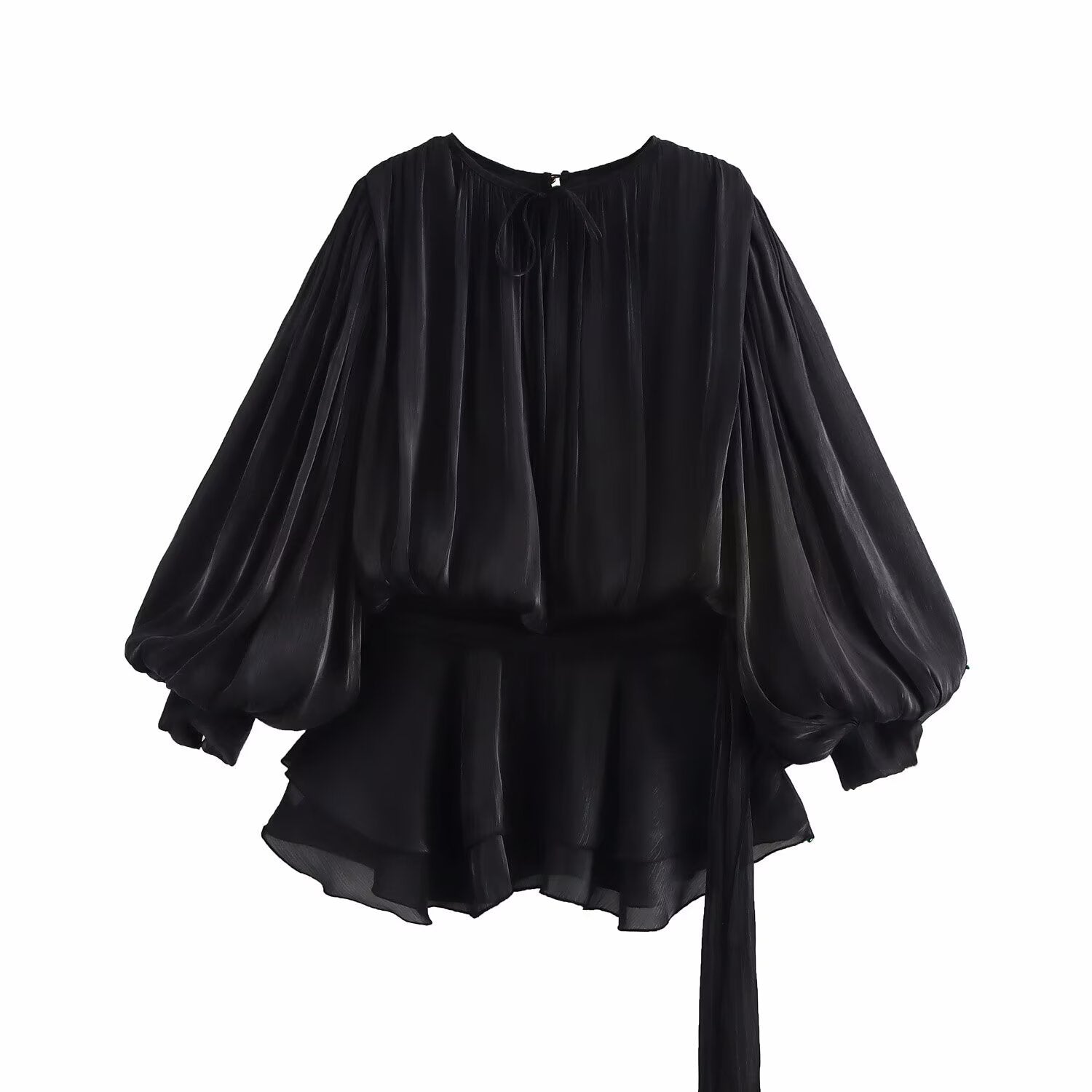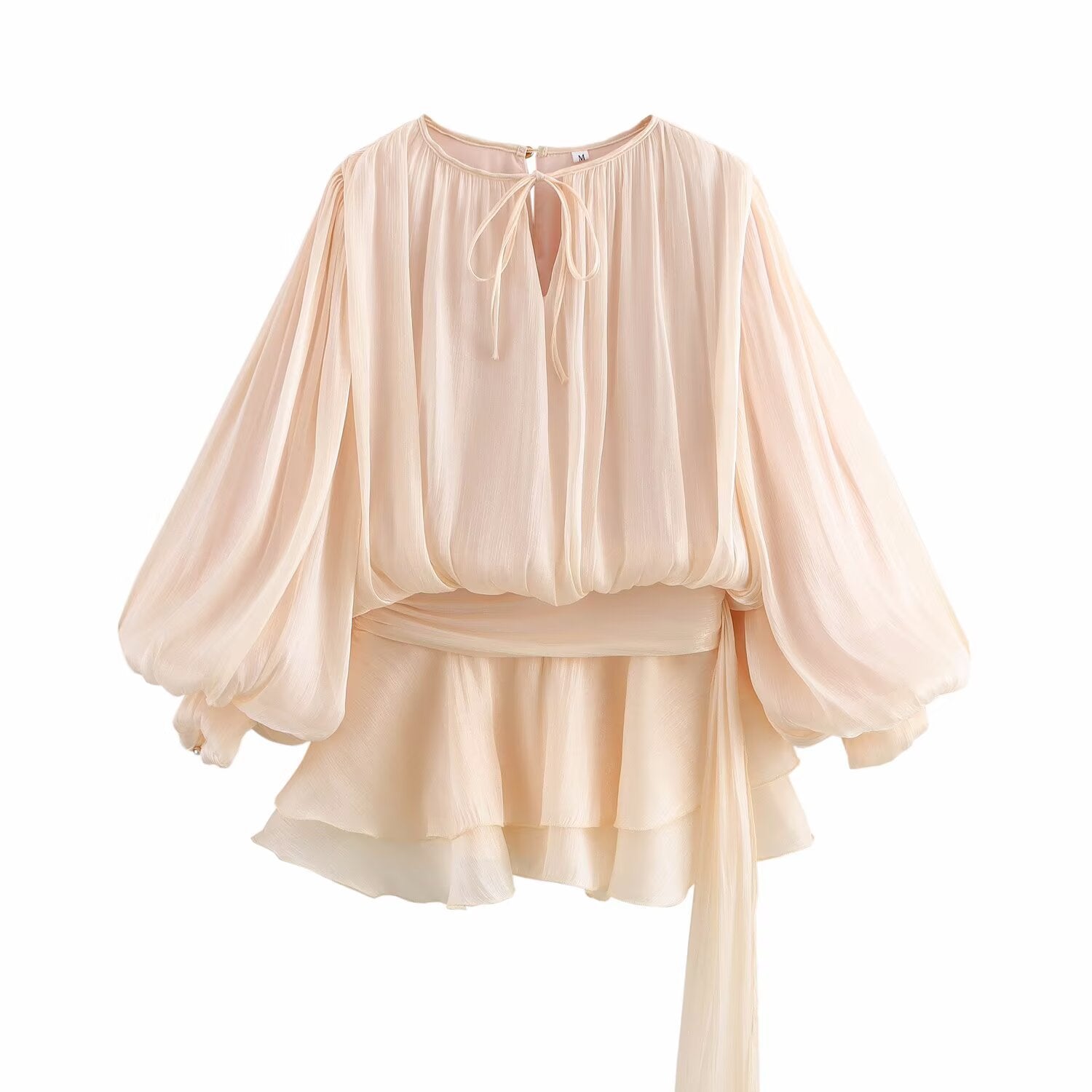 Temperament Lantern Dress Women's Spring New Short Skirt To Collect Irregular Lotus Leaf Edge Tie