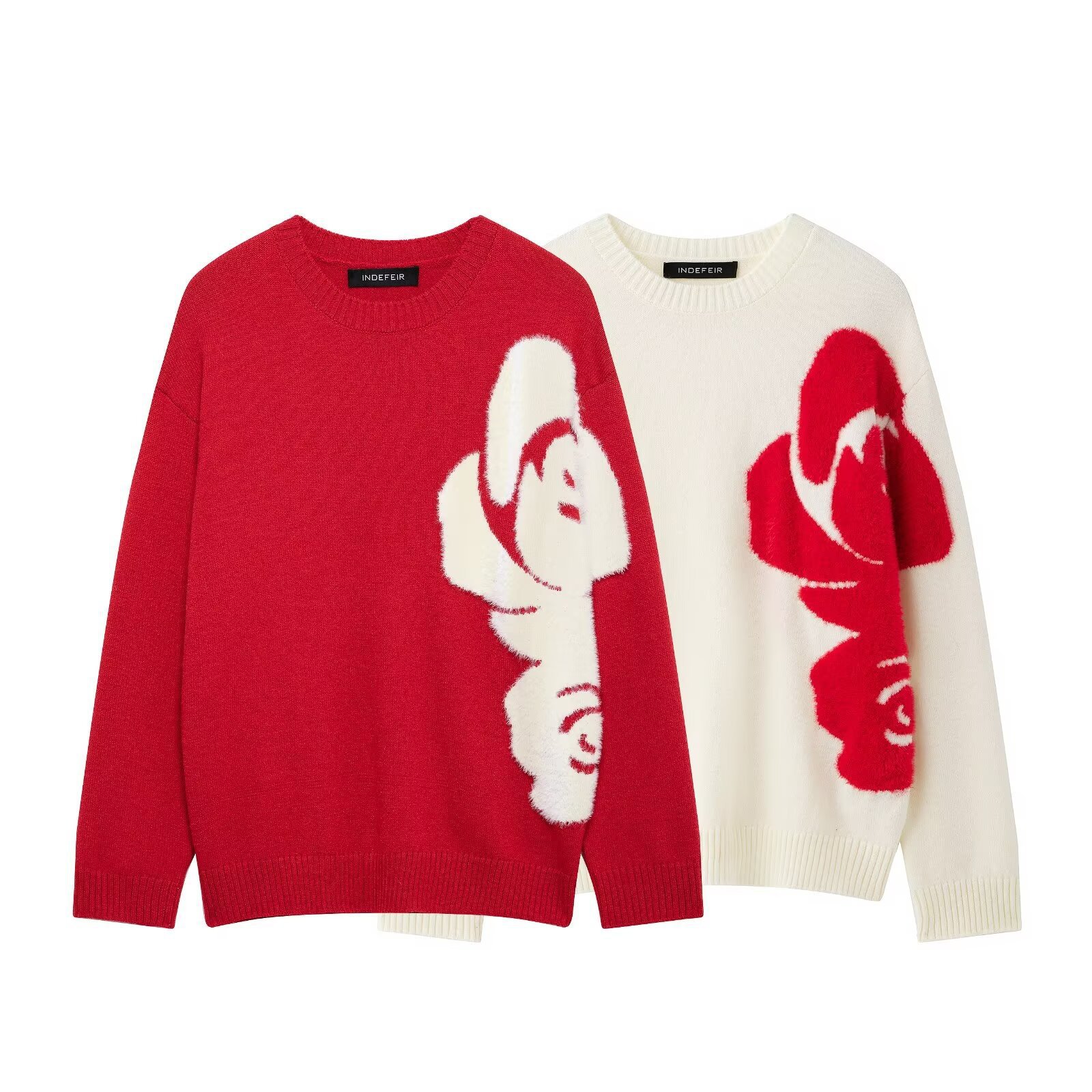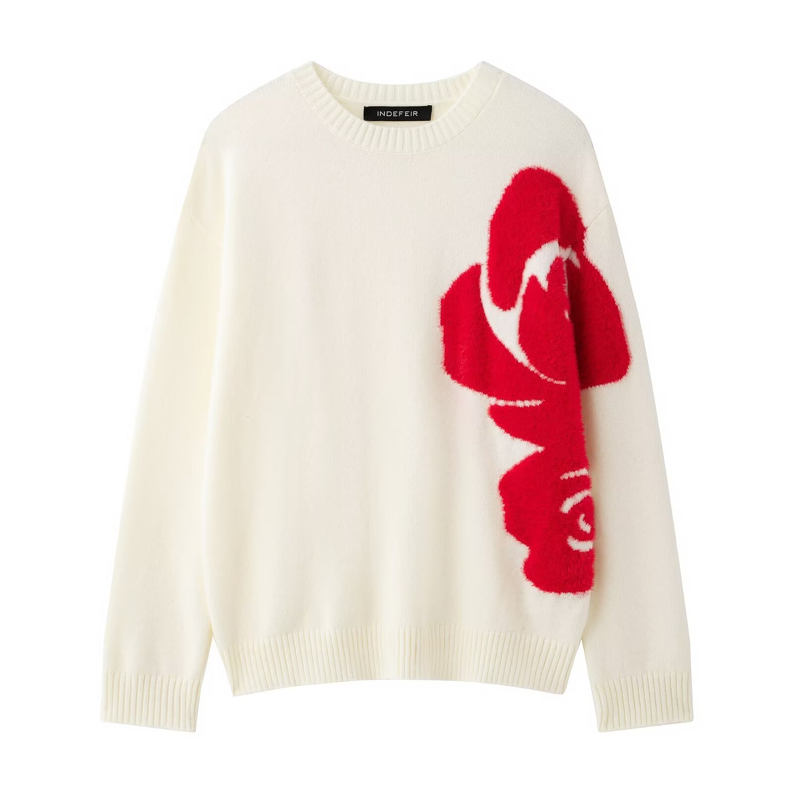 Spring 2025 New Lazy Wind Flower Design Women's Round-Neck Sweater Women's Loose Knitting Shirt