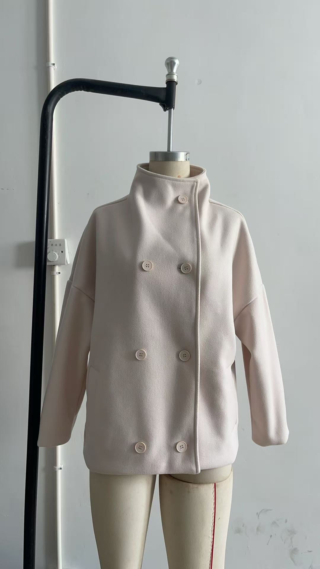 2025 Autumn And Winter Long Sleeve Suit Collar Double Buckle Collar Buckle Coat Double Buckle Suit Collar