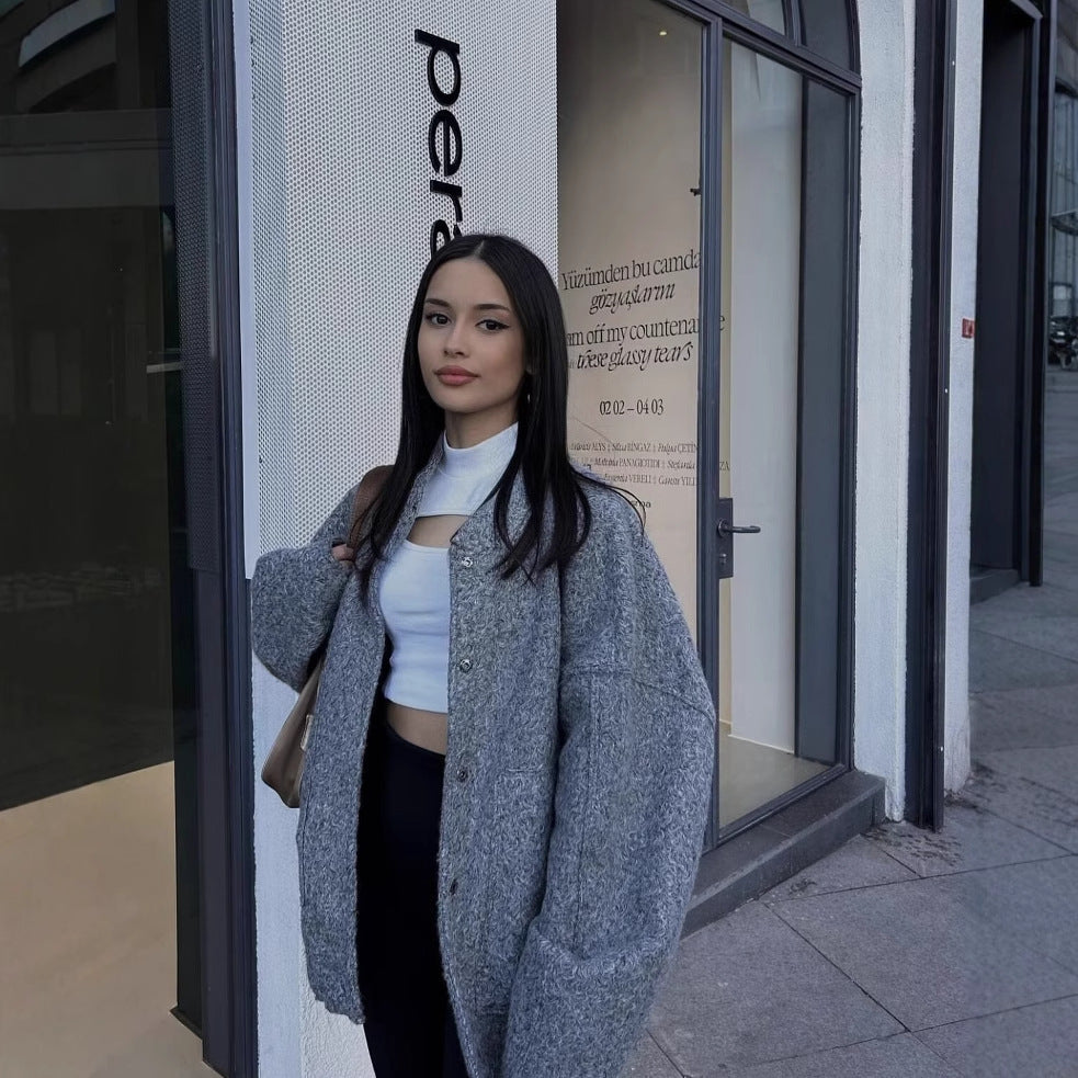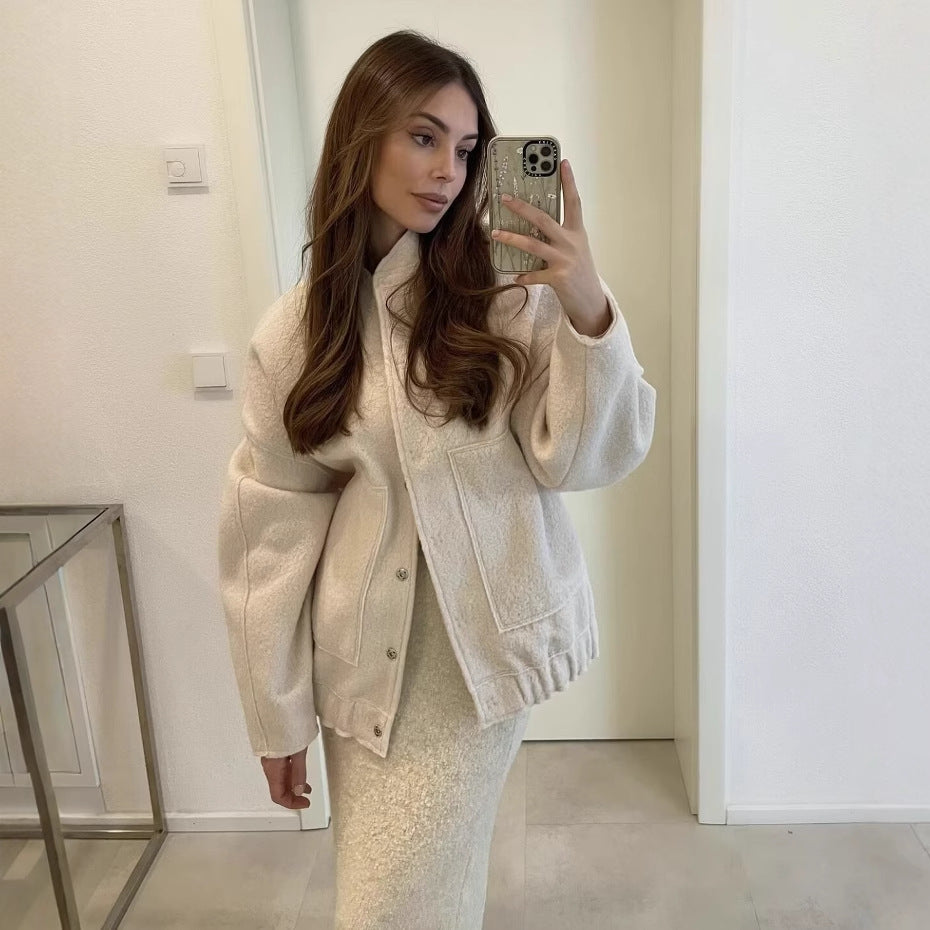 2025 Autumn And Winter New Women's Casual Multi-Color Loose Wool Jacket Dark Buckle Collar Jacket