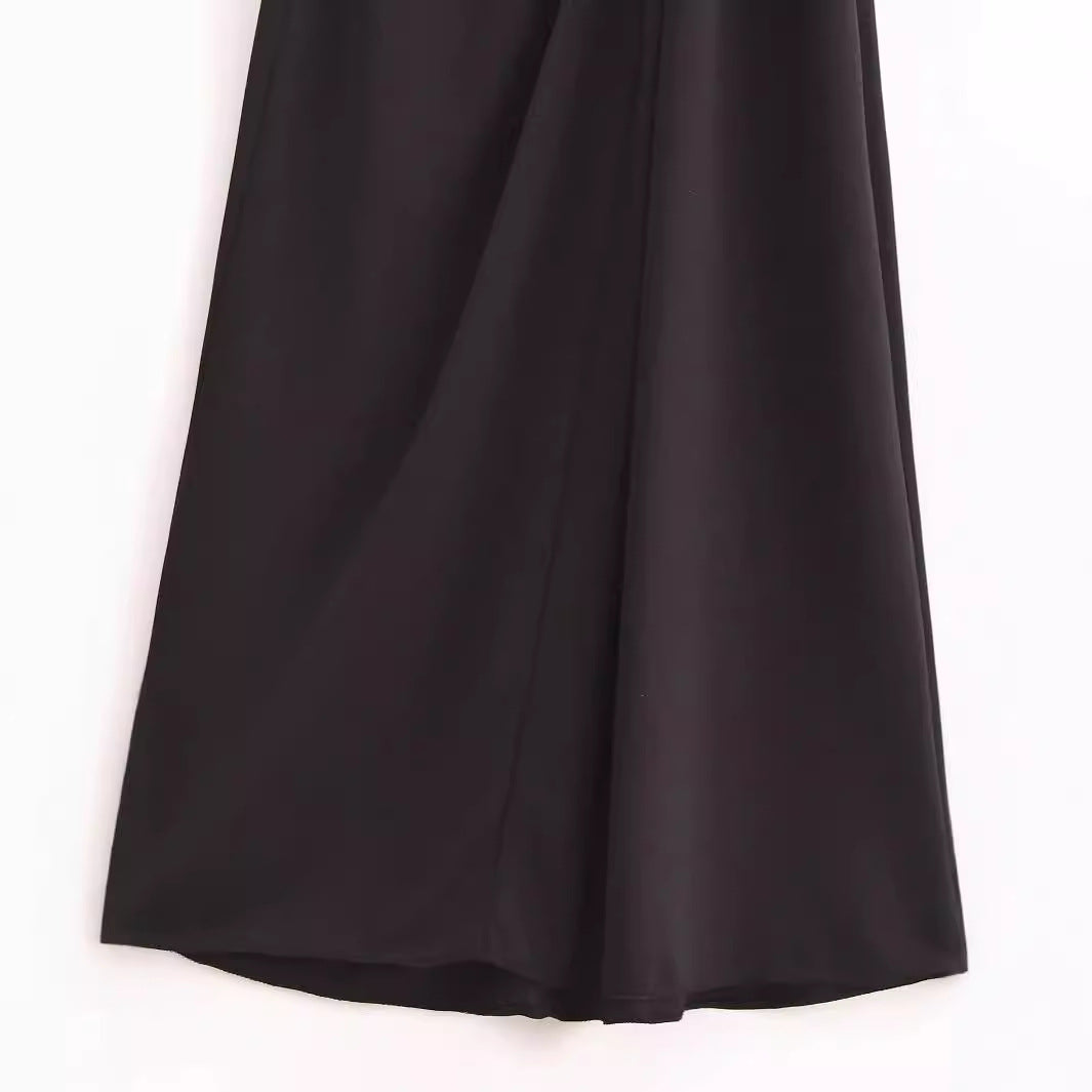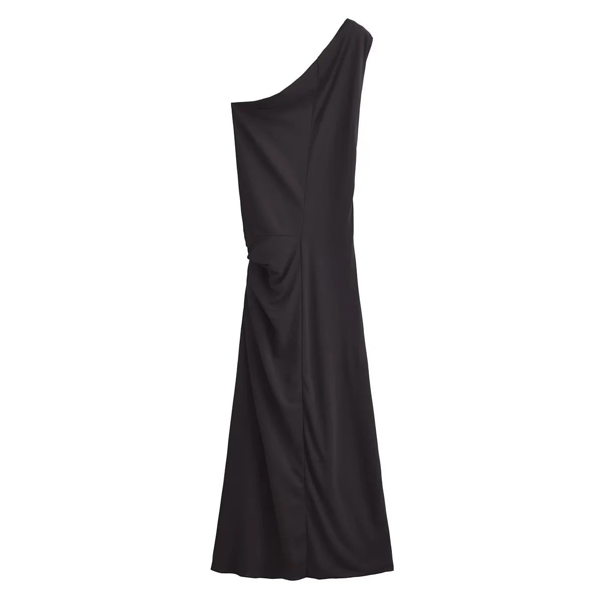2025 Autumn New Women's Decoration Body Black Asymmetric Design Temperament Long Dress