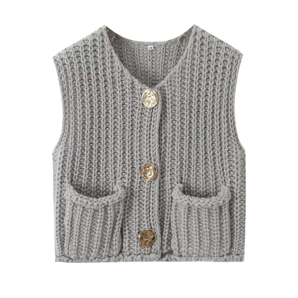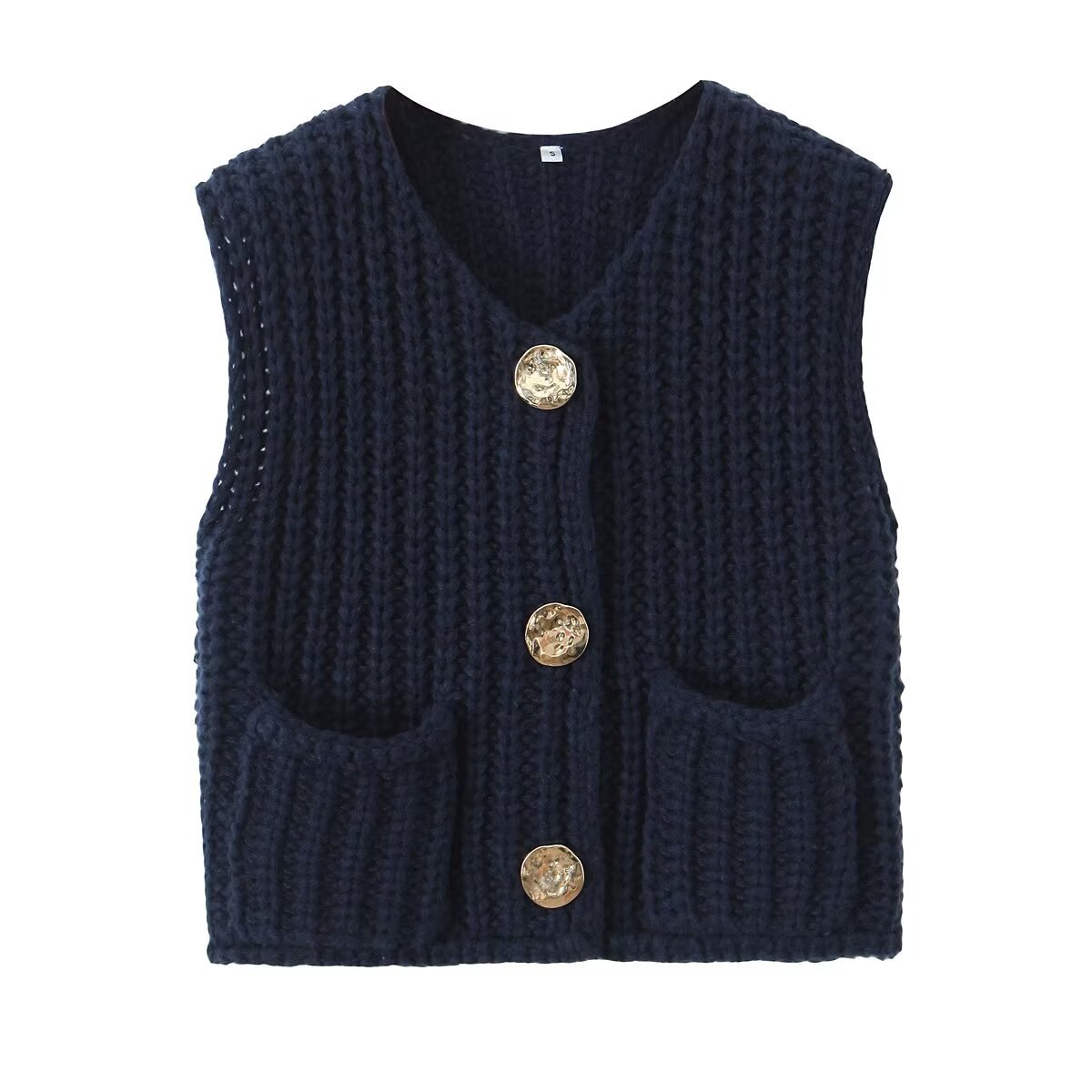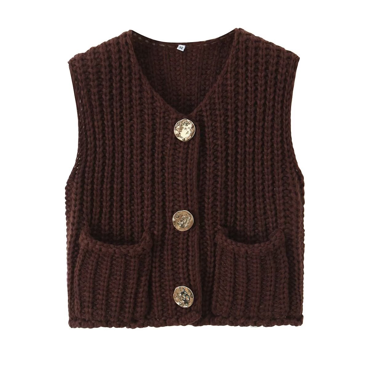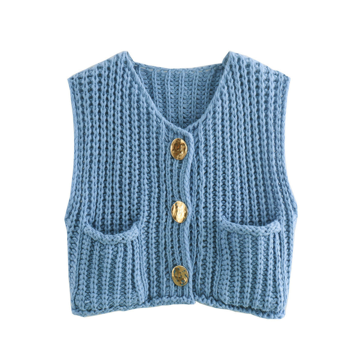 2025 Autumn Street Shirt Fashion Cute Crochet Wool Vest Knitted Thick Knitted Vest Women's Clothing