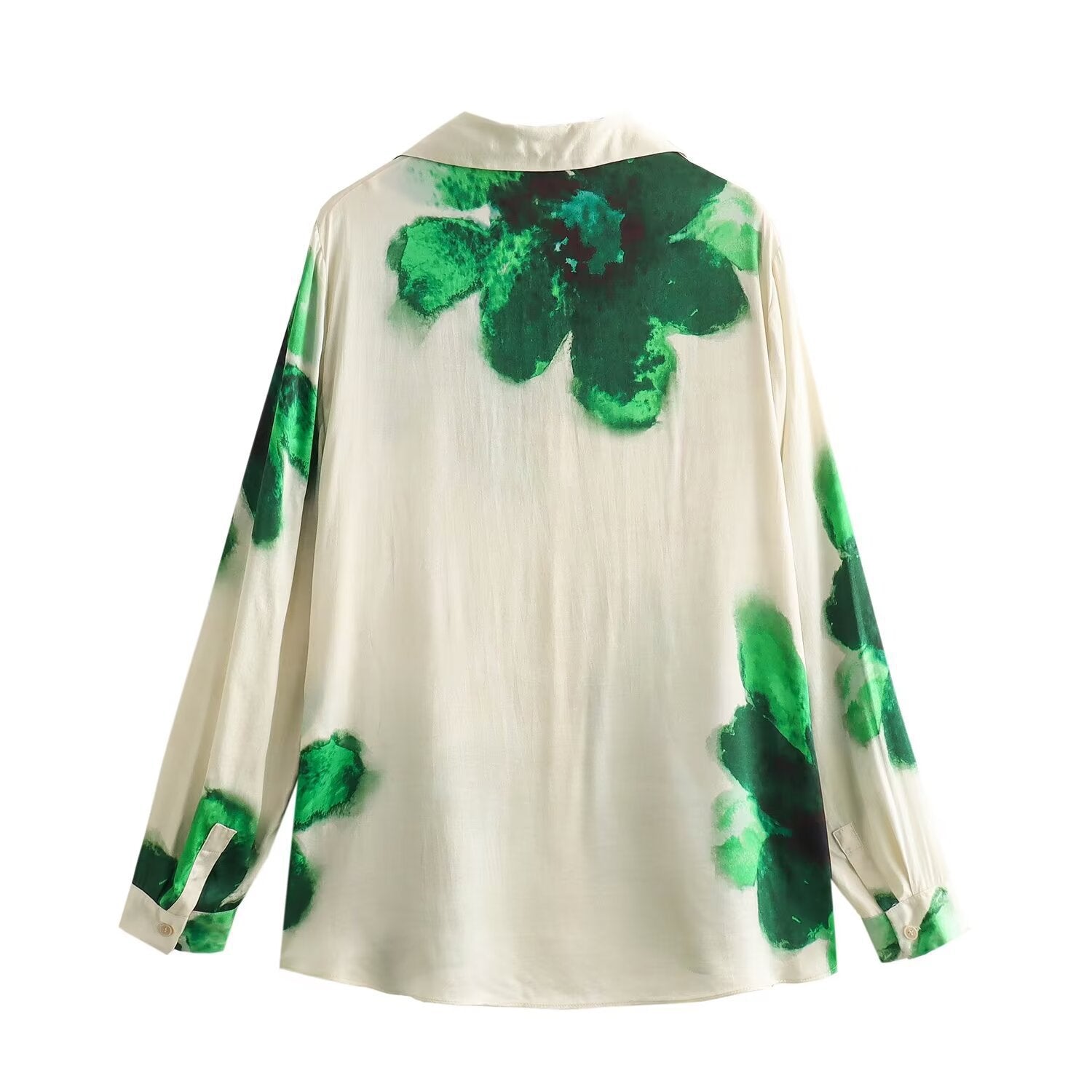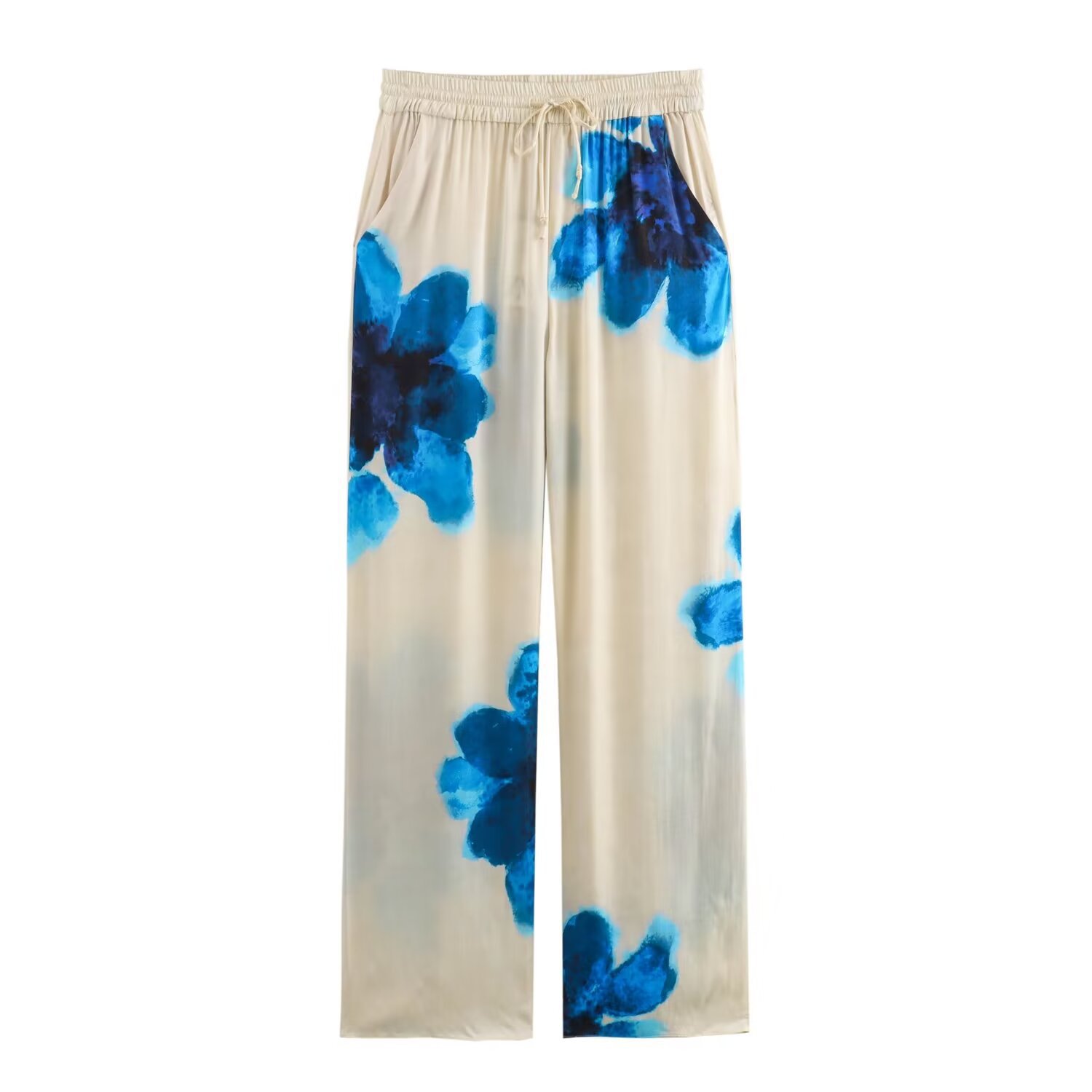 2025 Casual Fashion Set Vertical Trousers Women's Autumn Big Flower Print Shirt