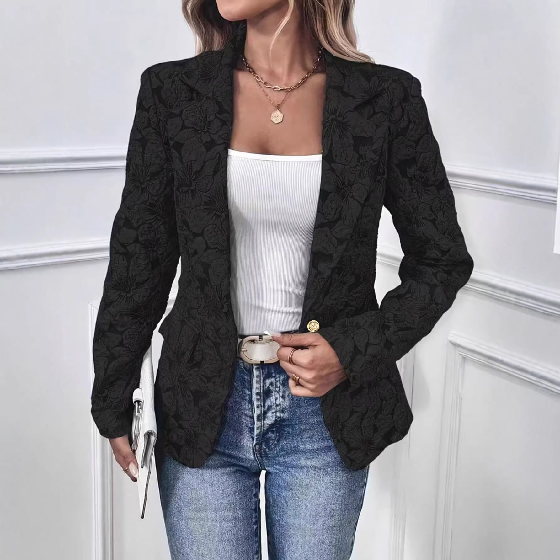 2025 Autumn And Winter Long Sleeve Suit Collar Double Buckle Collar Buckle Coat Double Buckle Suit Collar