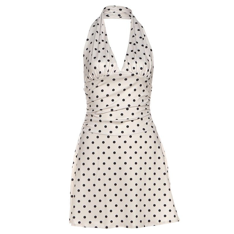 2025 Summer Fashion New Women's Fashion French Sexy Hanging Back Wave Print Design Feel Waist Dress