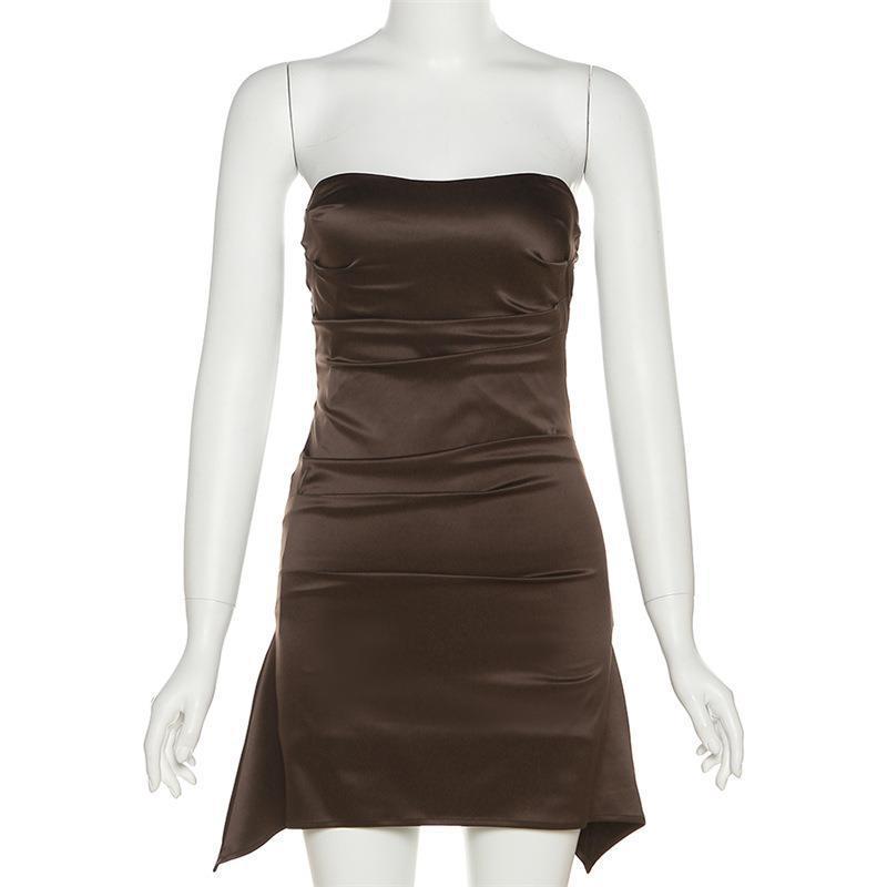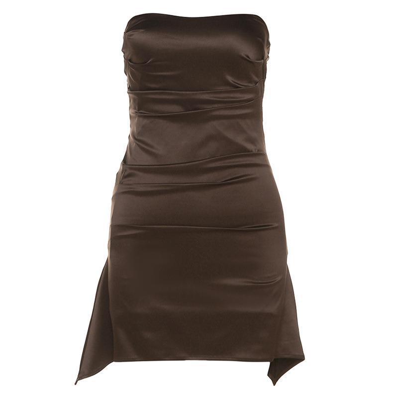 2025 Summer New Women's Fashion Pure Color Sexy Folding Waist Dress Slim Skinny Chest Dress