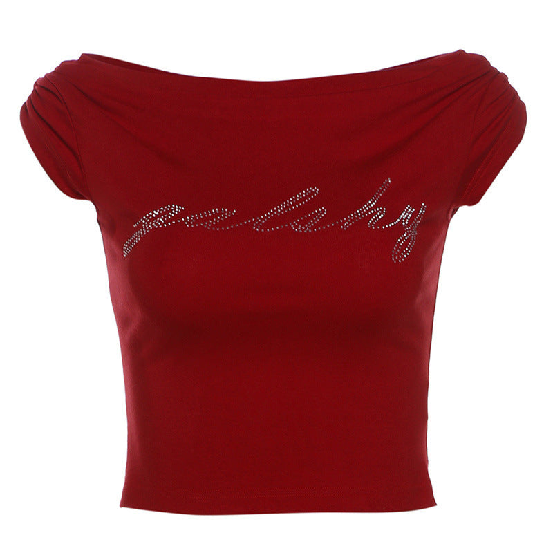 2025 Summer New Women's Hot Hottie Fashion Word Shoulder Repair Umbilly Umbilly Umbilly Umbilly Blouse