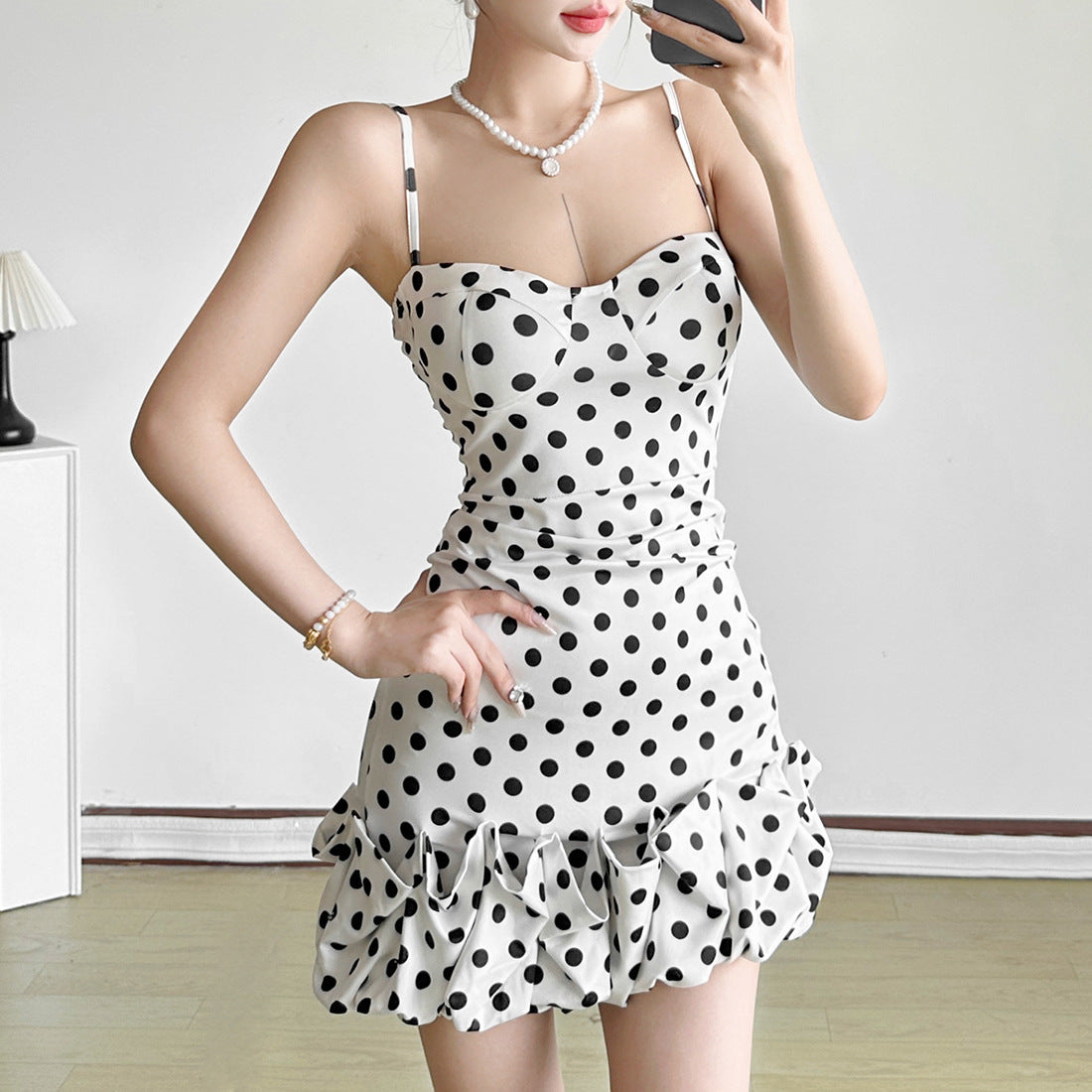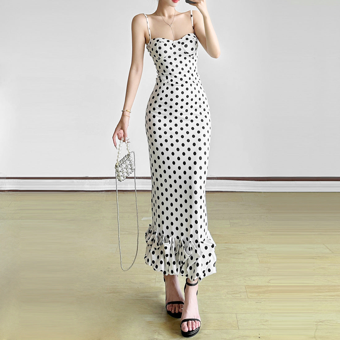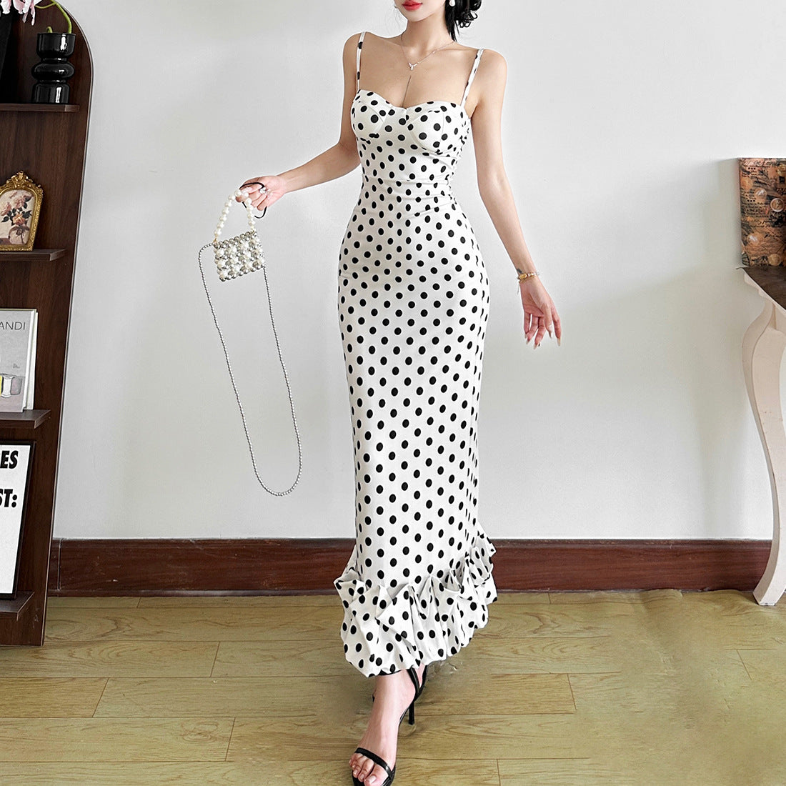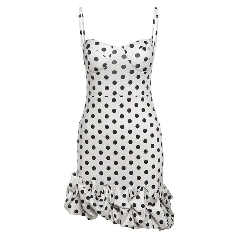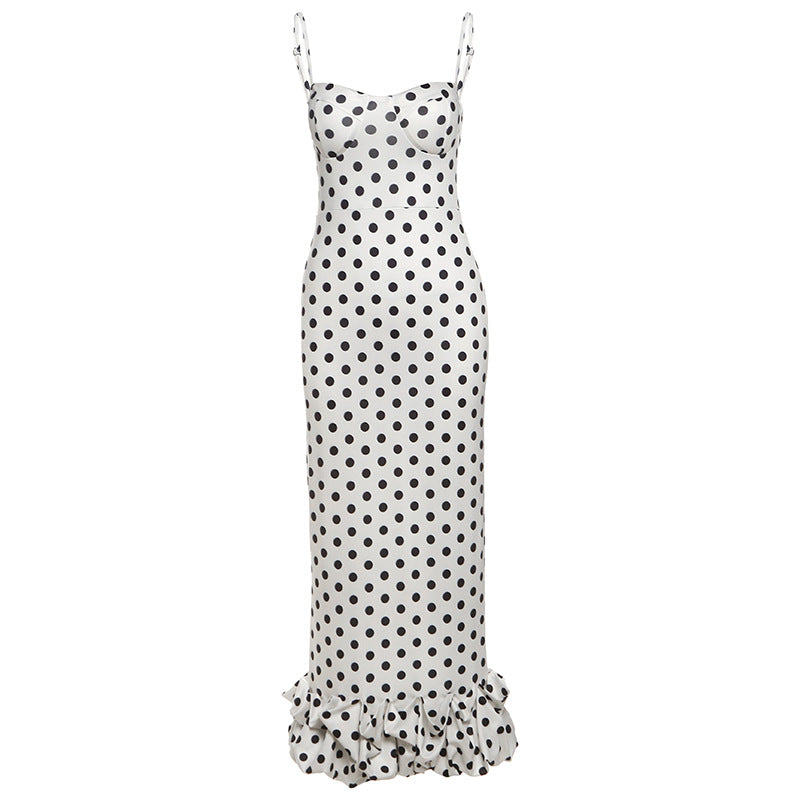 2025 Summer Women's New French Sexy Wave Point Sling Temperament High-End Waist Repair Dress