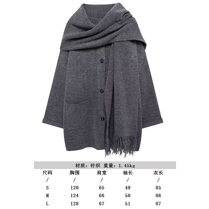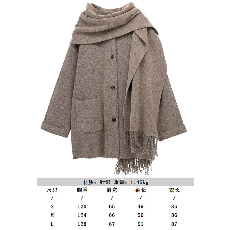 2025 Women's Autumn New Asymmetric Scarf Short Loose Knit Coat