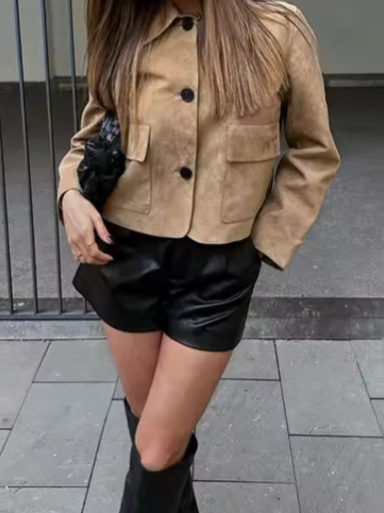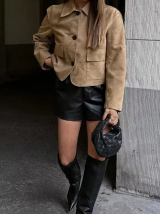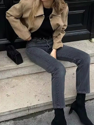 2025 Women's Fashion Retro Long-Sleeved Collar Short Coat