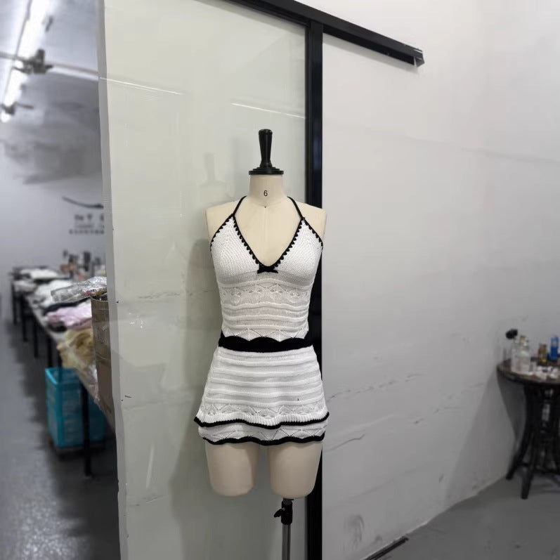 French Gentle Wind Skirt Woman's New High-Waisted Hanging Cake Skirt Temperament Long Skirt Sling Vest Set