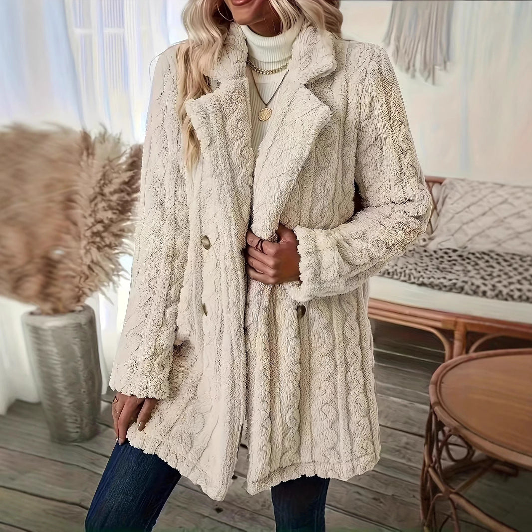 2025 Autumn And Winter Long Sleeve Suit Collar Double Buckle Collar Buckle Coat Double Buckle Suit Collar