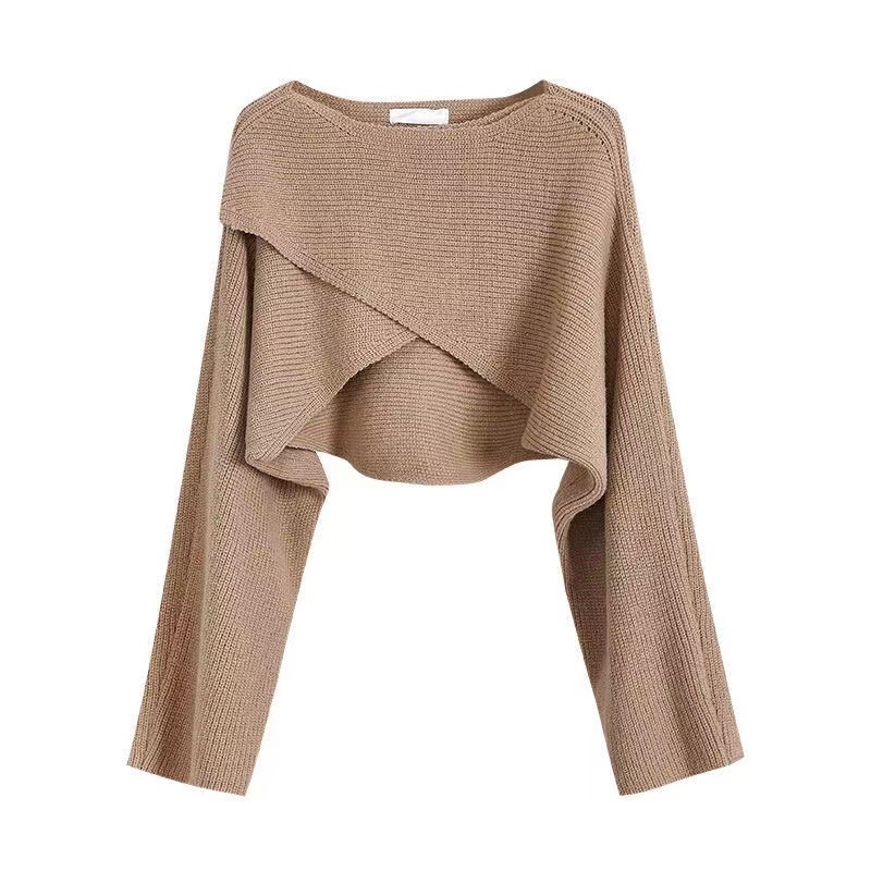Autumn Dress 2025 New Sea-Going Cross-Sleeved Knitted Shawl Jacket Design Sweater Woman
