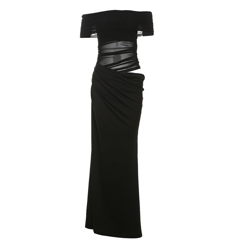 Fashion 2025 New Winter Women's Sexy Solid Color Collar Perspective Of The Waist Dress