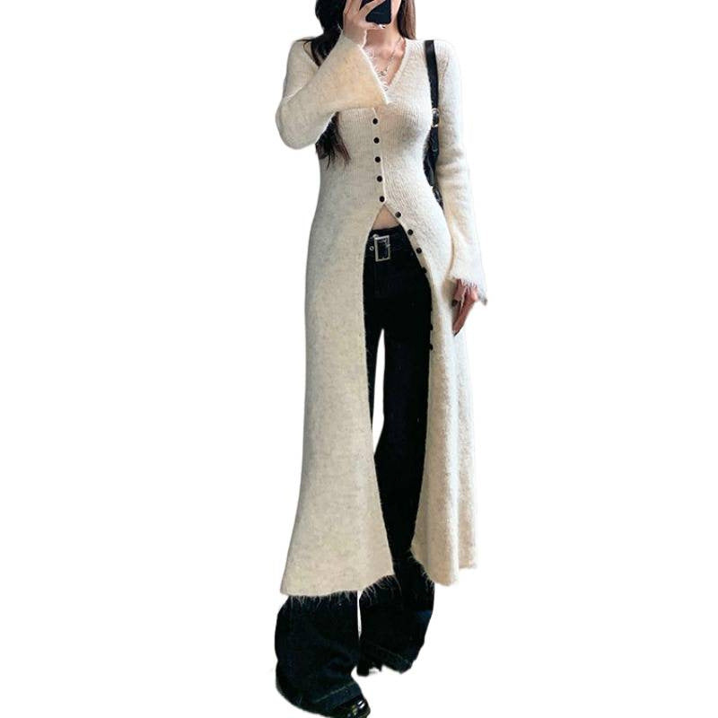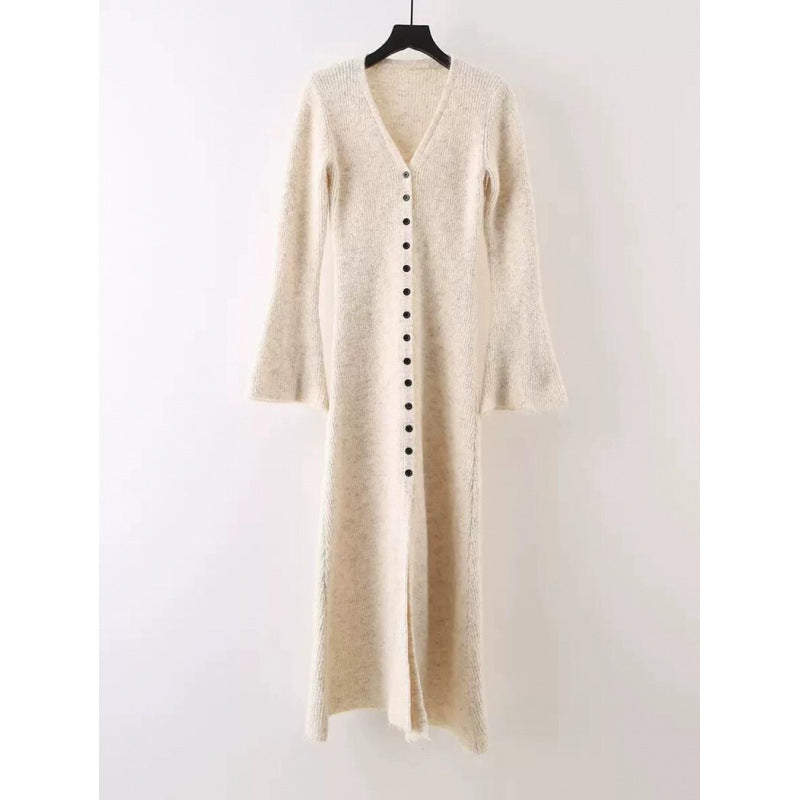 Korean Ins Design Long Sleeve V-Neck Knitted Dress Woman