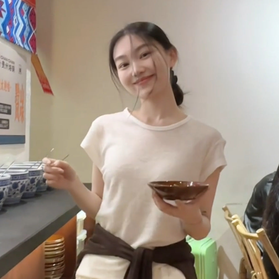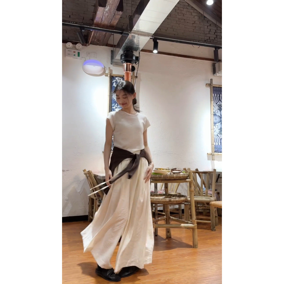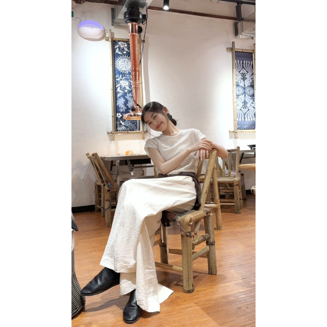Lazy And Relaxed Sense Of Simple Shoulder Round Neck Short Sleeve T-Shirt High Lumbar Loose Leisure Pants Two Sets