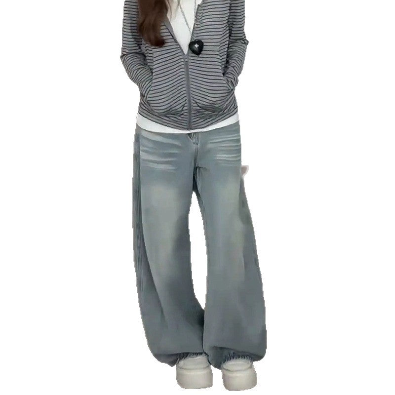 Light Blue High Street Design Loose Broad Leg Pants Women Lazy Wind Hip Hops Fatmm Straight Jeans