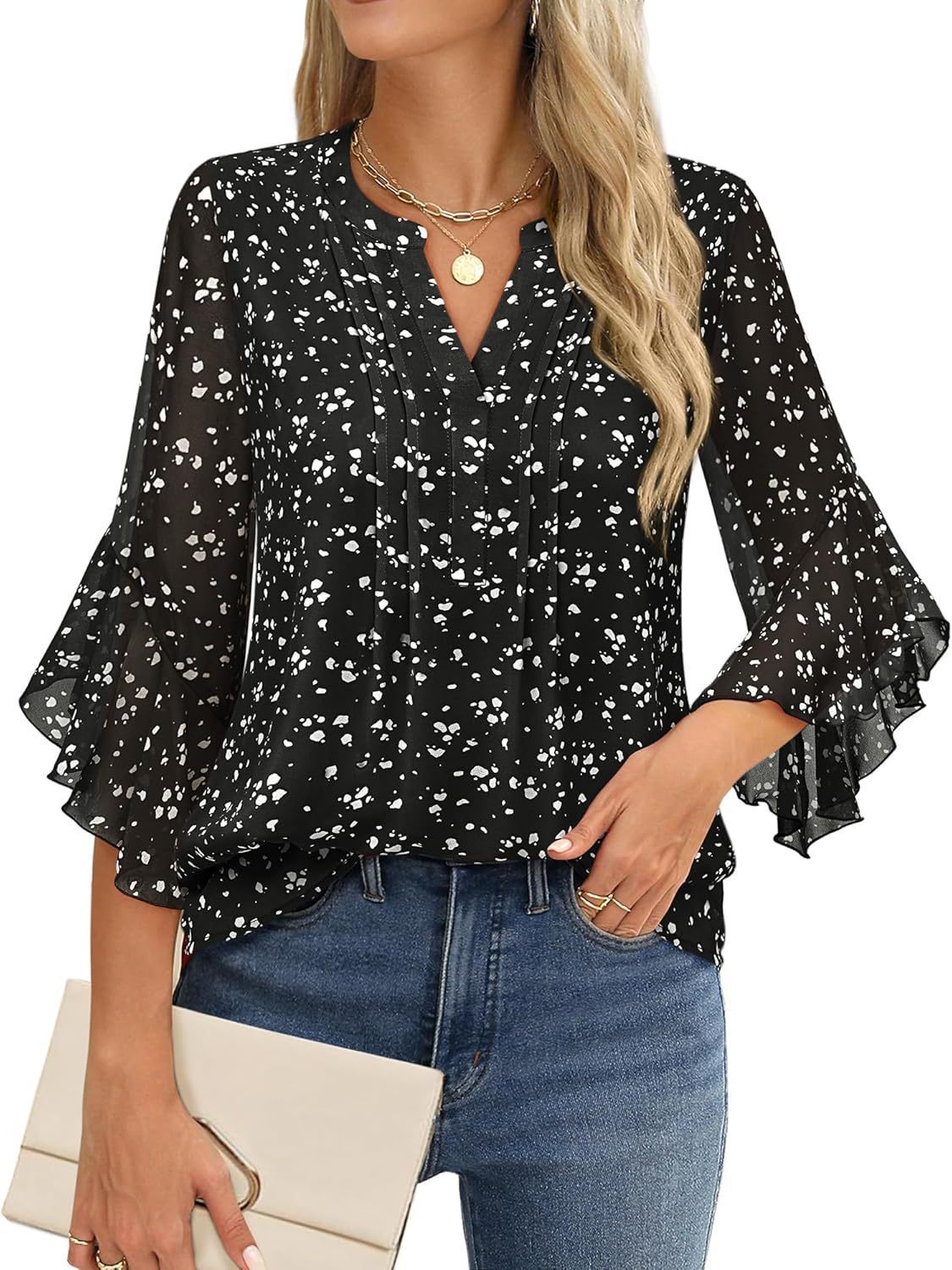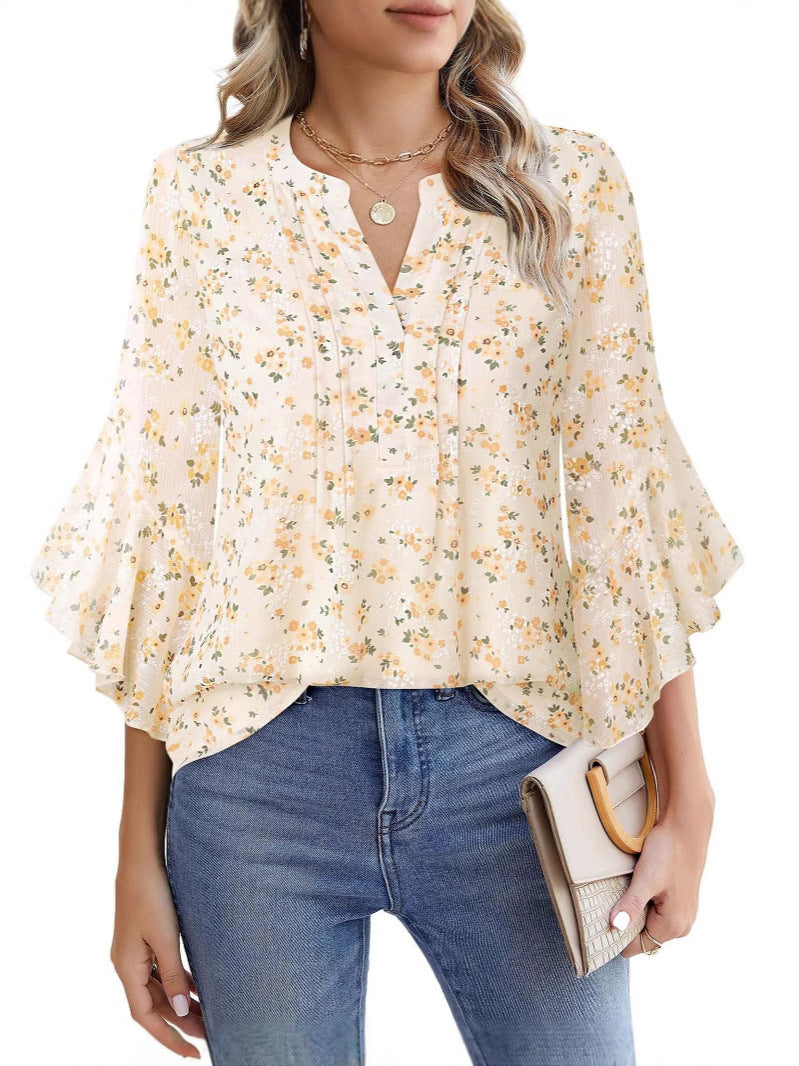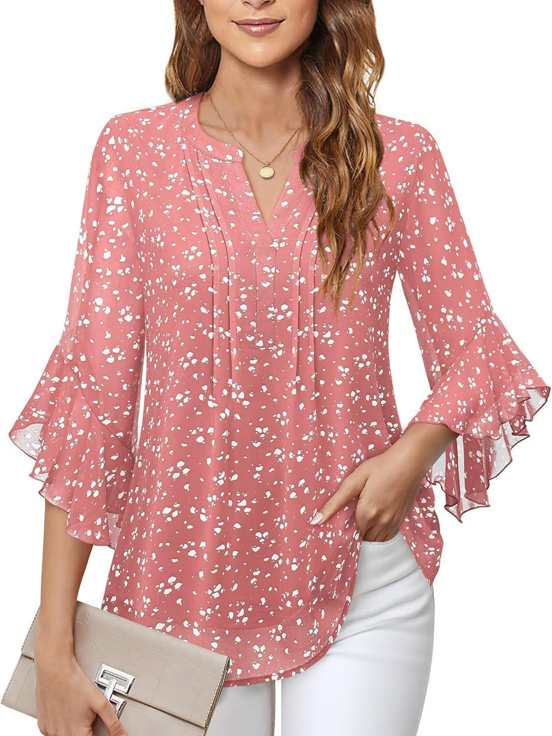 Lotus Leaf Seven-Sleeve Tops Solid Color Fashion Casual Casual V-Neck Business Shirt Chiffon Women's Clothing