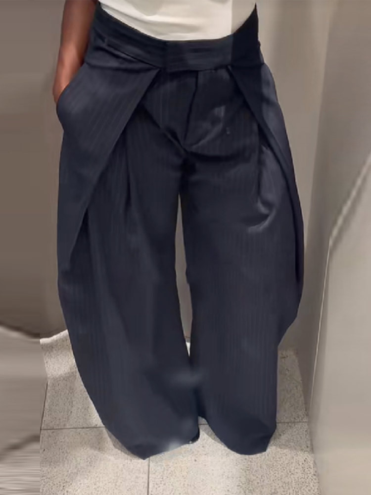 New Autumn 2025 New Fashion Temperament Loose Striped Broad Leg Suit Pants