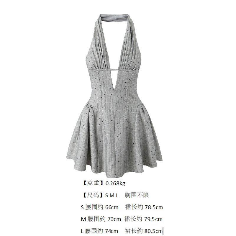 Short Dress Body With Bare Back Hanging Neck Dress Female Hollow Deep V-Necked Minority French Folded A-Word Mini-Skirt Dress Dress