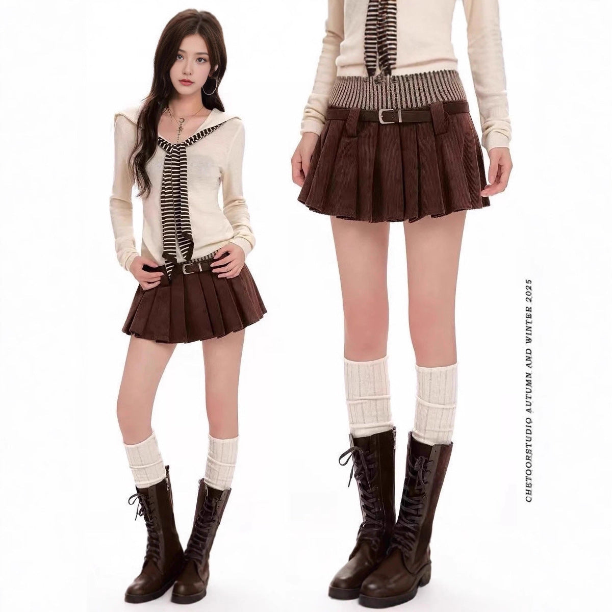 Short Skirt Women Spring And Autumn Wick Velvet Skirt Brown Large Size Fat Mm High-Waist College Windy Skirt Thin