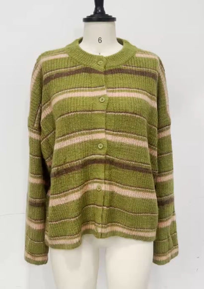 Spring 2025 Women's New Comfortable Striped Knitted Cardigan