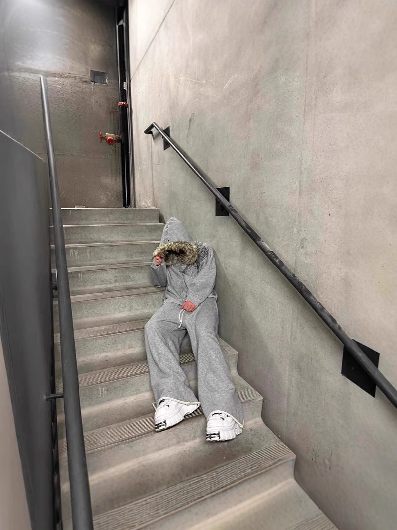 Suffocyage Hat Sweater Print Pattern Long-Sleeved Hoodie Hoodie Retro Coat Street Trendy Y2k