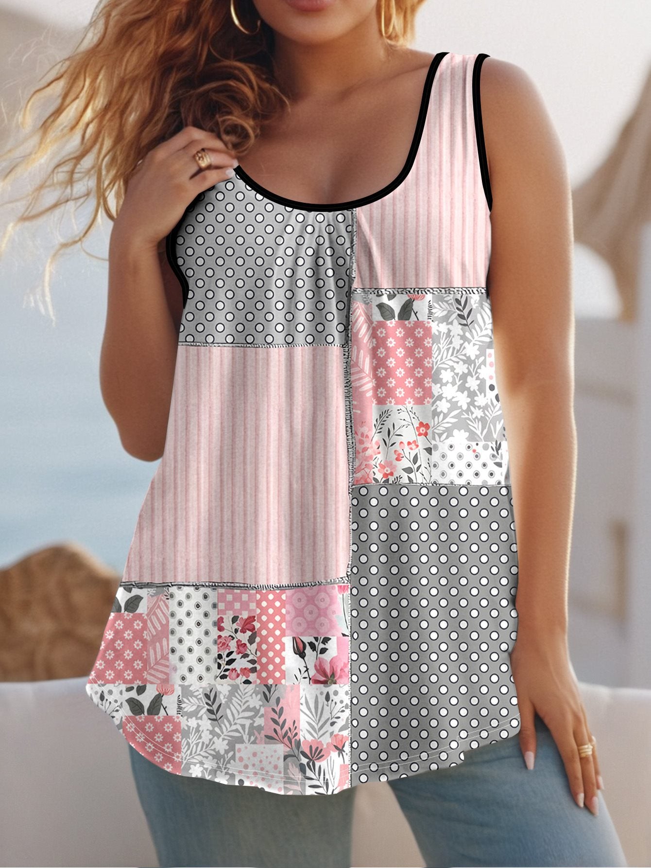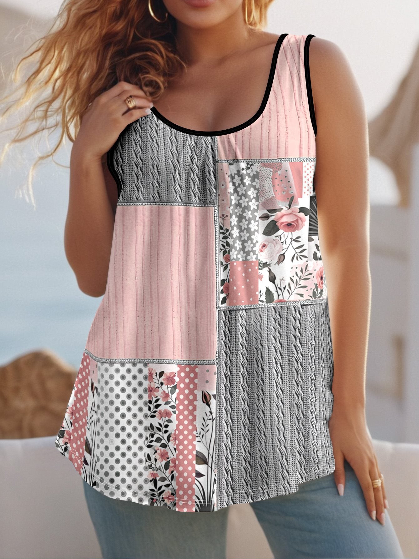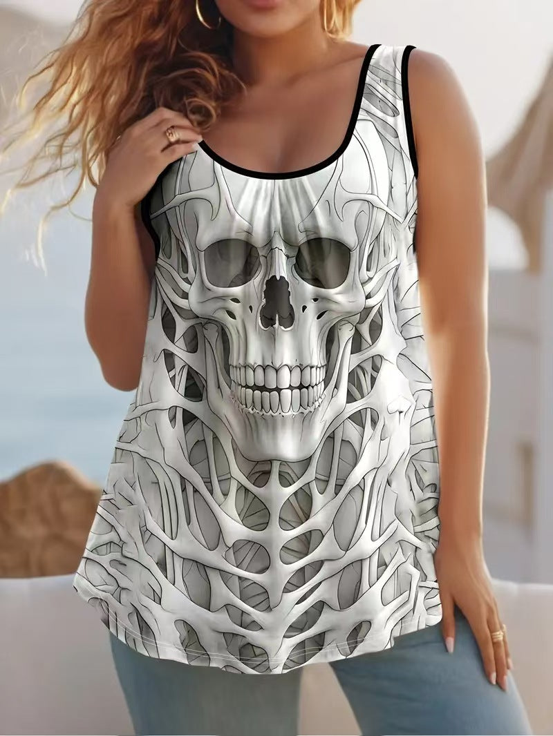 Summer Round Collar Vest New Art Splicing Pattern 3D Digital Printing Sleeveless Women's Folding Vest