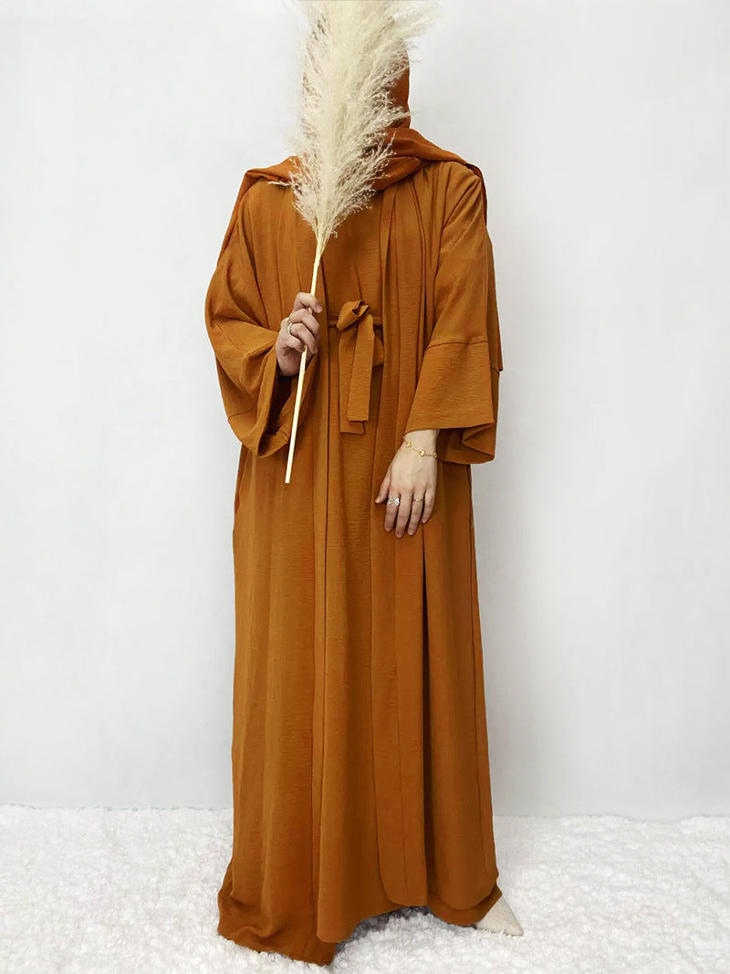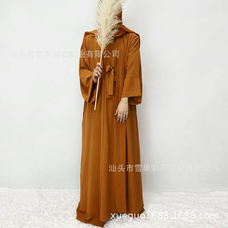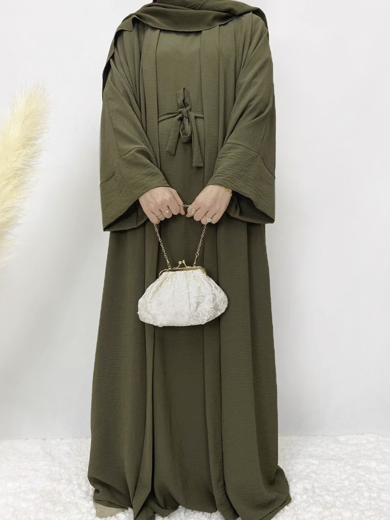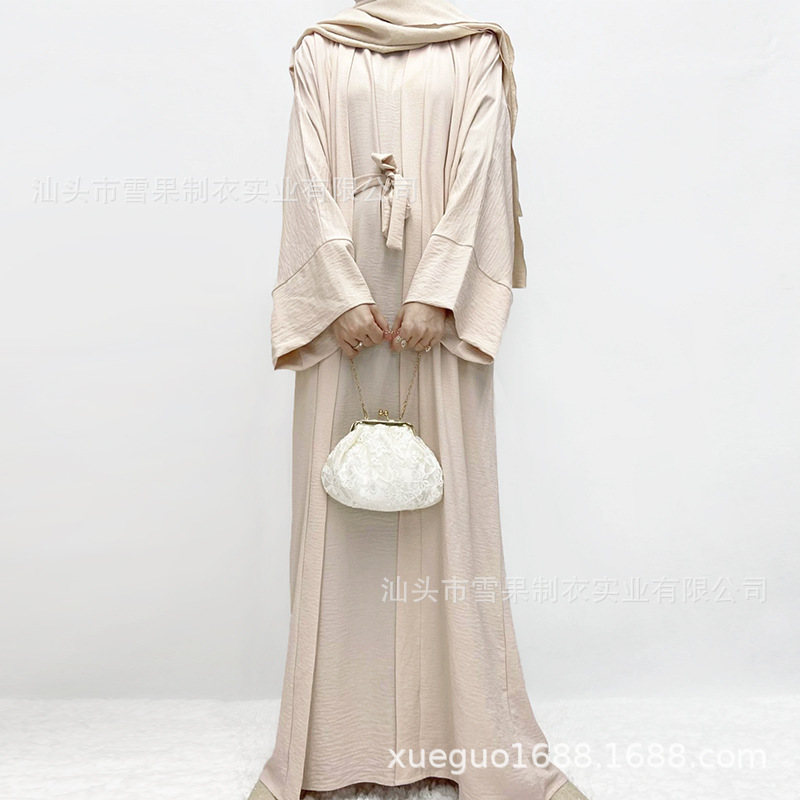 Tiktok Robe Skirt Coat Women's Explosive Middle East Turkey Solid Color Big-Size Cardigan 2 Sets