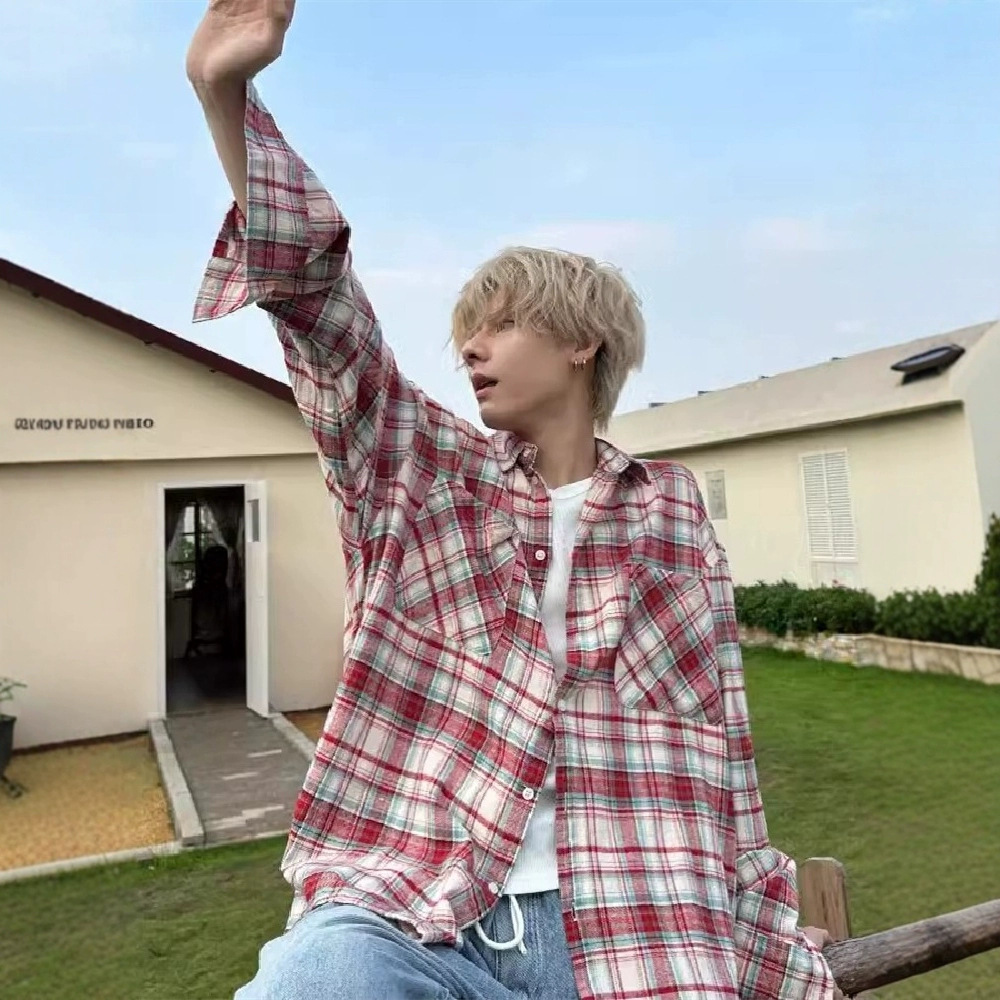 Vintage Grinding Plaid Long-Sleeved Shirt Men And Women Cleanfit Handsome Couple The Same Fried Street Coat