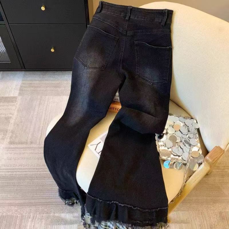 Vintage Multi-Pocket Workwear Jeans Women's Large Street Vibe High-Waist Broad Legs Casual Straight Pants