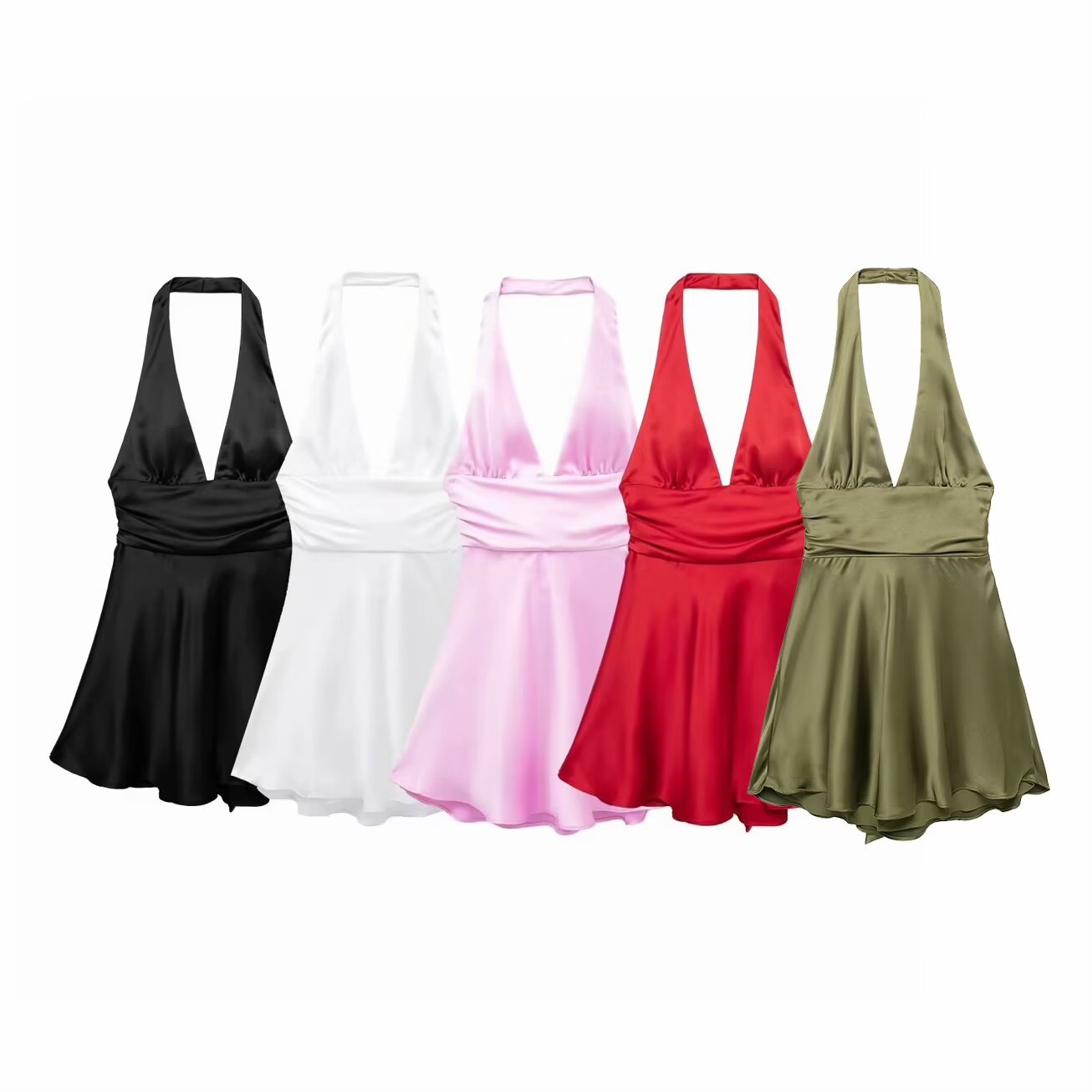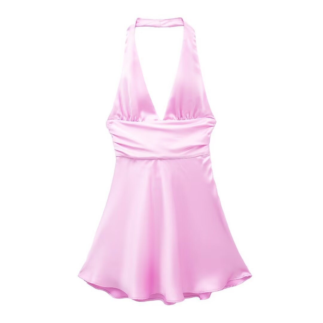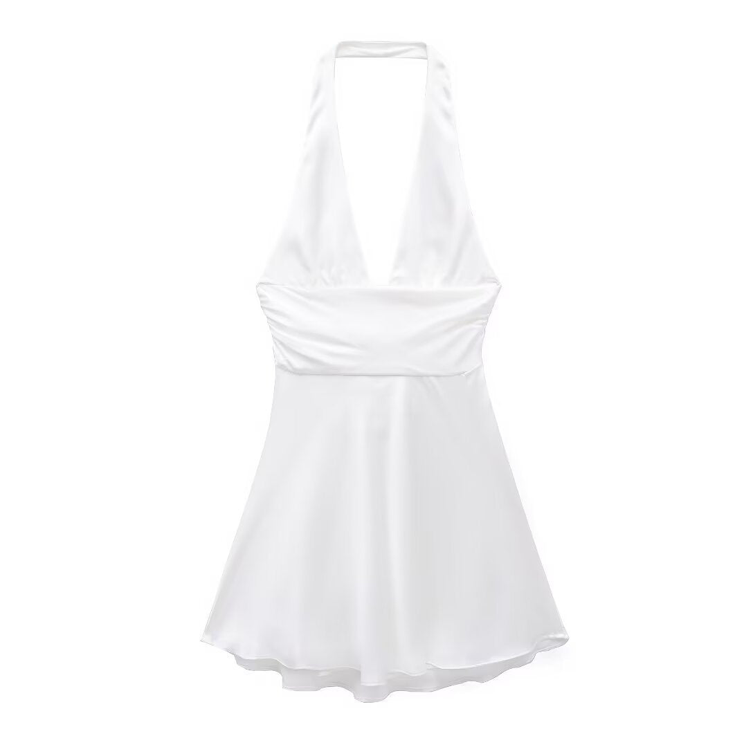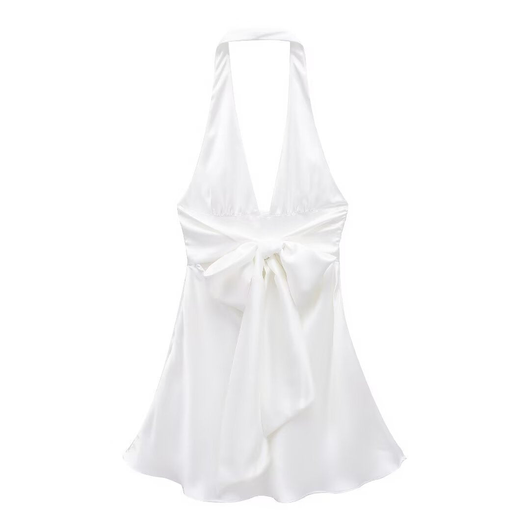 Women's Clothing 2025 Spring New Silk-Sense Texture Hanging Neck-Deck Bow Tie With Mini-Coat