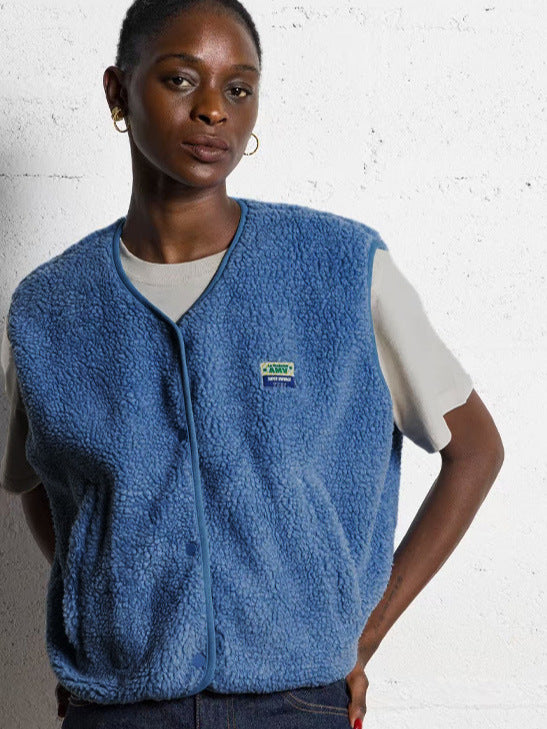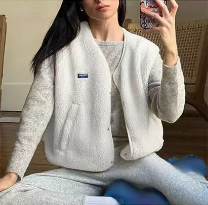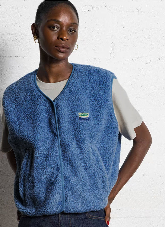 Women's Sleeveless Woolen Vest Blouse Fashion Lady Single Buckle Vest Down Women's Cotton Vest