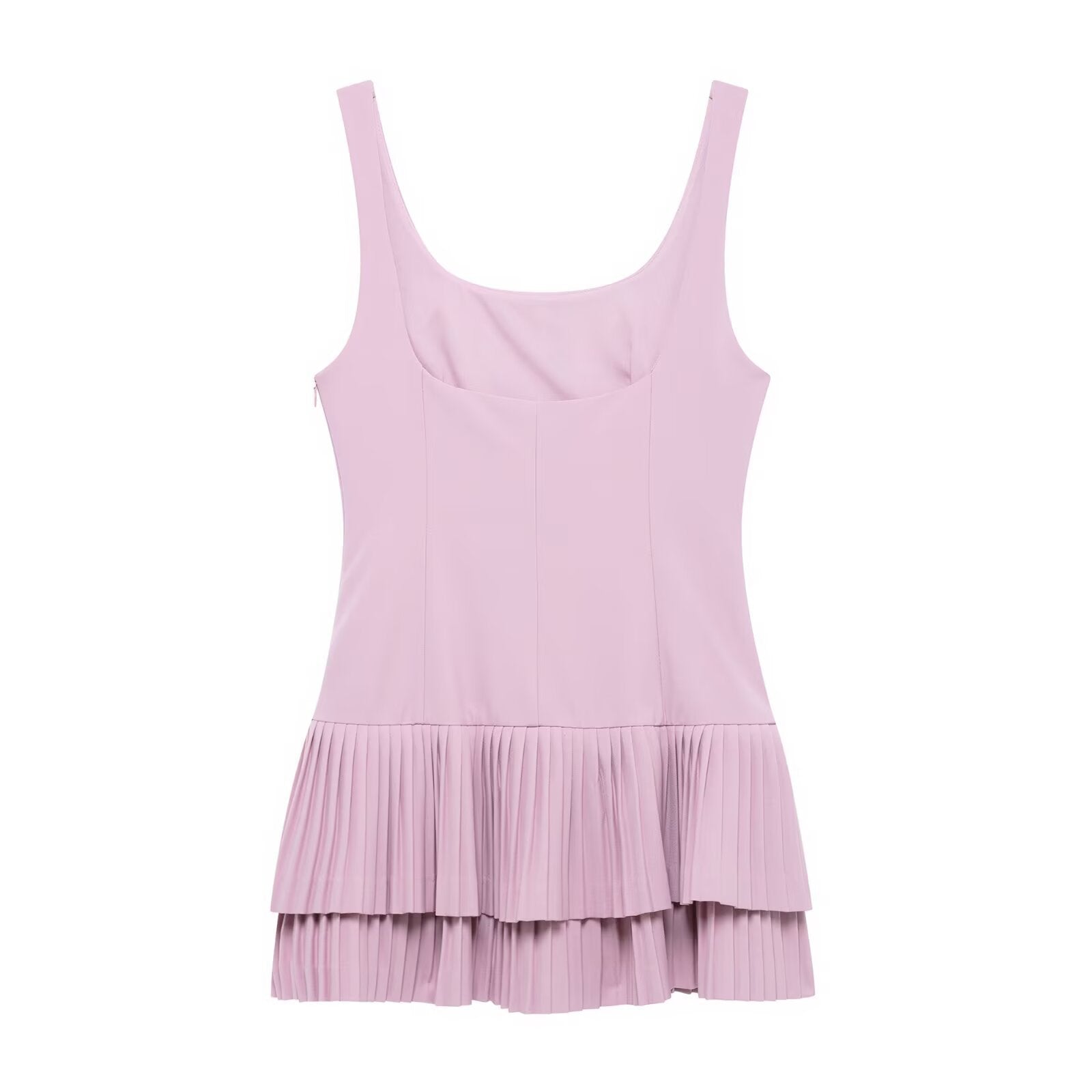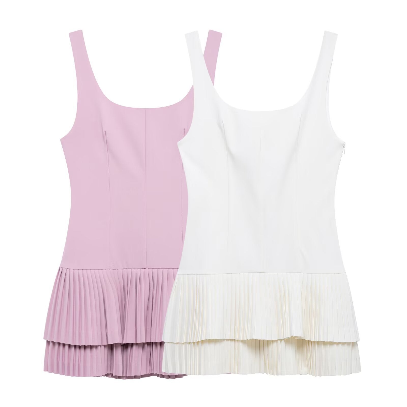 Women's Trouser Dress 2025 Spring-Less Sleeveless Folding Double-Layer Hem Repair Miniskirt